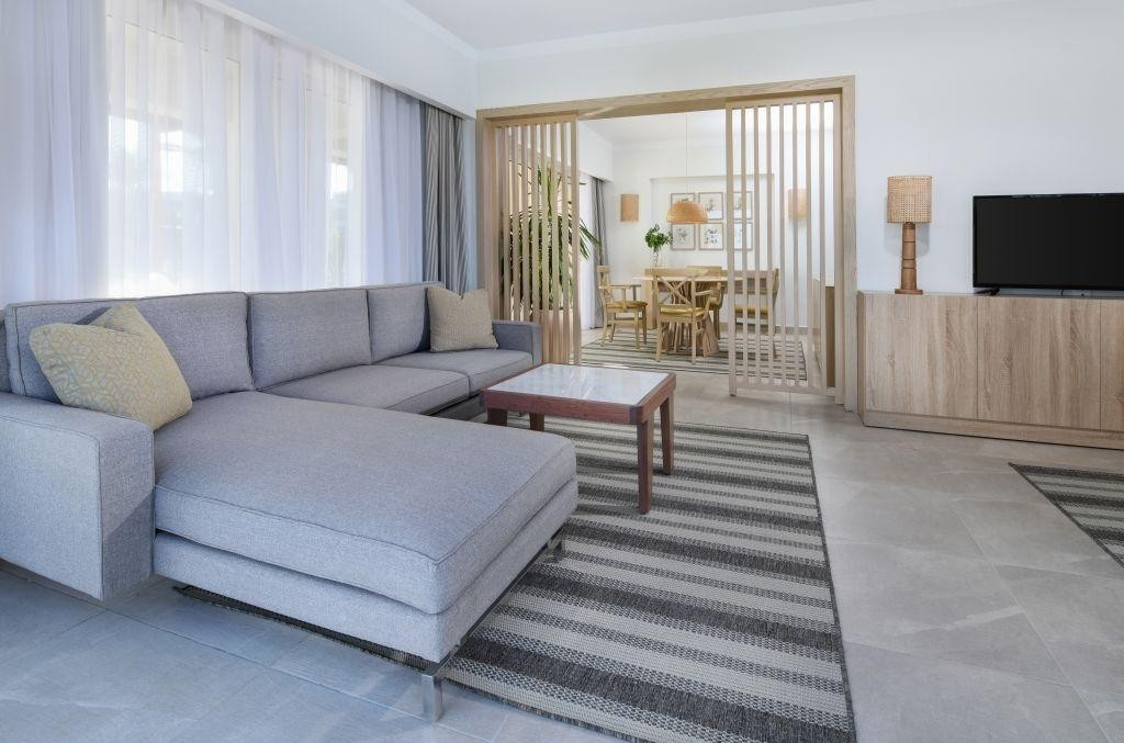 - Deluxe -családi szobák - medencére/tengerre nézők, tágasabbak, 1 franciaágy, 2x kihúzható kanapé, a földszinten, a főépületben