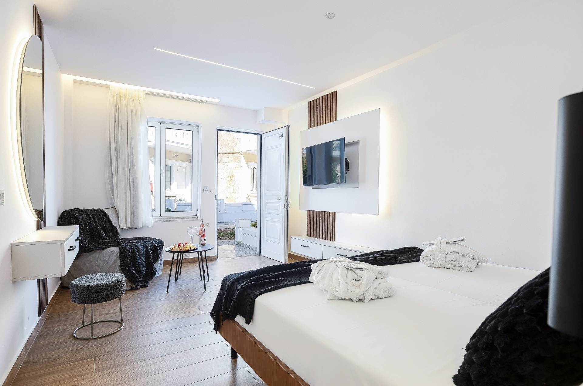 - családi szobák - kertre nézők, hálószoba és nappali