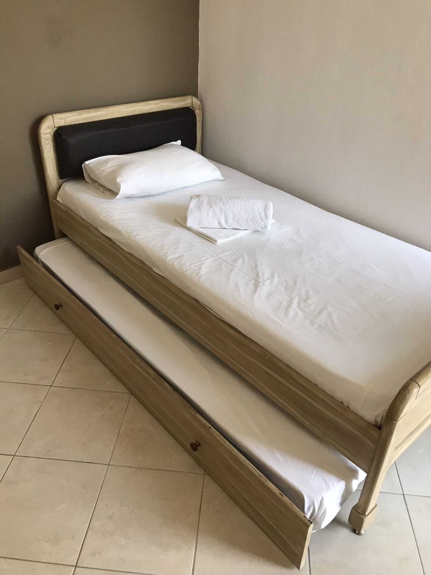 Fekvése: A modern apartmanház a tengerparttól mindössze 160 méterre található, Sarti központjában. Rendkívül jó fekvésének köszönhetően éttermek, bárok közvetlen közelében található, a strand egy néhány perces sétával elérhető. Szolgáltatások: Az apartmanházat szép belső kialakítása miatt bátran ajánljuk mindenkinek. A ház közelében taverna, kávézó, szórakozóhely található, amely nyitott ablak esetén zavarhatja a nyugodt pihenést. Utasaink a WIFI-t térítésmentesen vehetik igénybe. Elhelyezés: 2-3 ágyas félszuterén, illetve emeleti stúdiók: a szobákban a konyhasarok és az ágyak egy légtérben vannak, a 3.fő részére a pótágy normál ágy. 3+1 ágyas emeleti stúdió: a konyhasarok és a hálótér egy légtérben található, 3 normál ággyal felszerelt, a 4.fő részére az egyik főágy alól kihúzható pótágy áll rendelkezésre. A stúdiók felszereltségéhez légkondicionáló (felár a helyszínen fizetendő, 35 EUR/készülék/hét), sat-tévé, konyhasarok a legszükségesebb eszközökkel felszerelve, fürdőszoba zuhanyzóval, kerti bútorokkal berendezett balkon vagy terasz tartozik. Személyenként 2 db törölköző biztosított, amelyek a strandra nem vihető le. Ellátás: Önellátás. (Vacsora ill. félpanzió felár ellenében kérhető.)Egyéb: