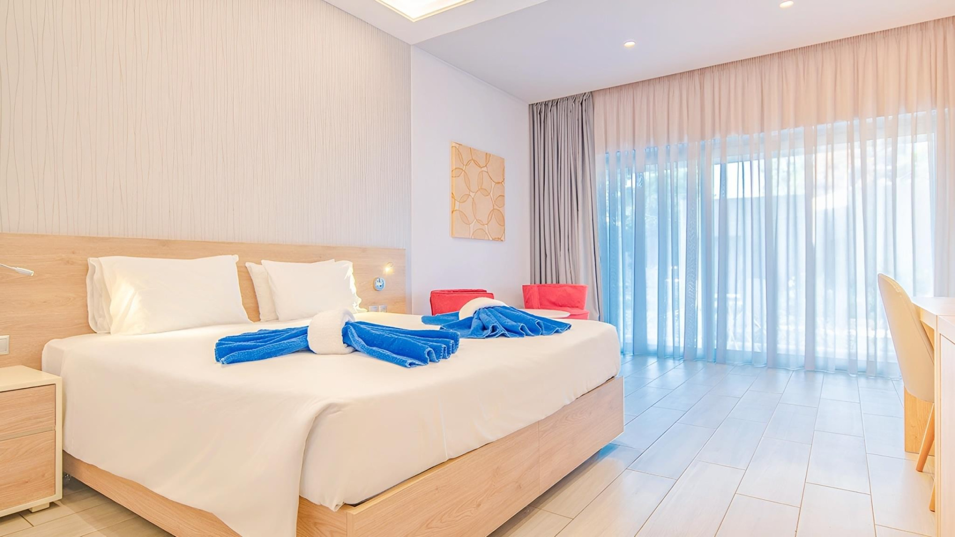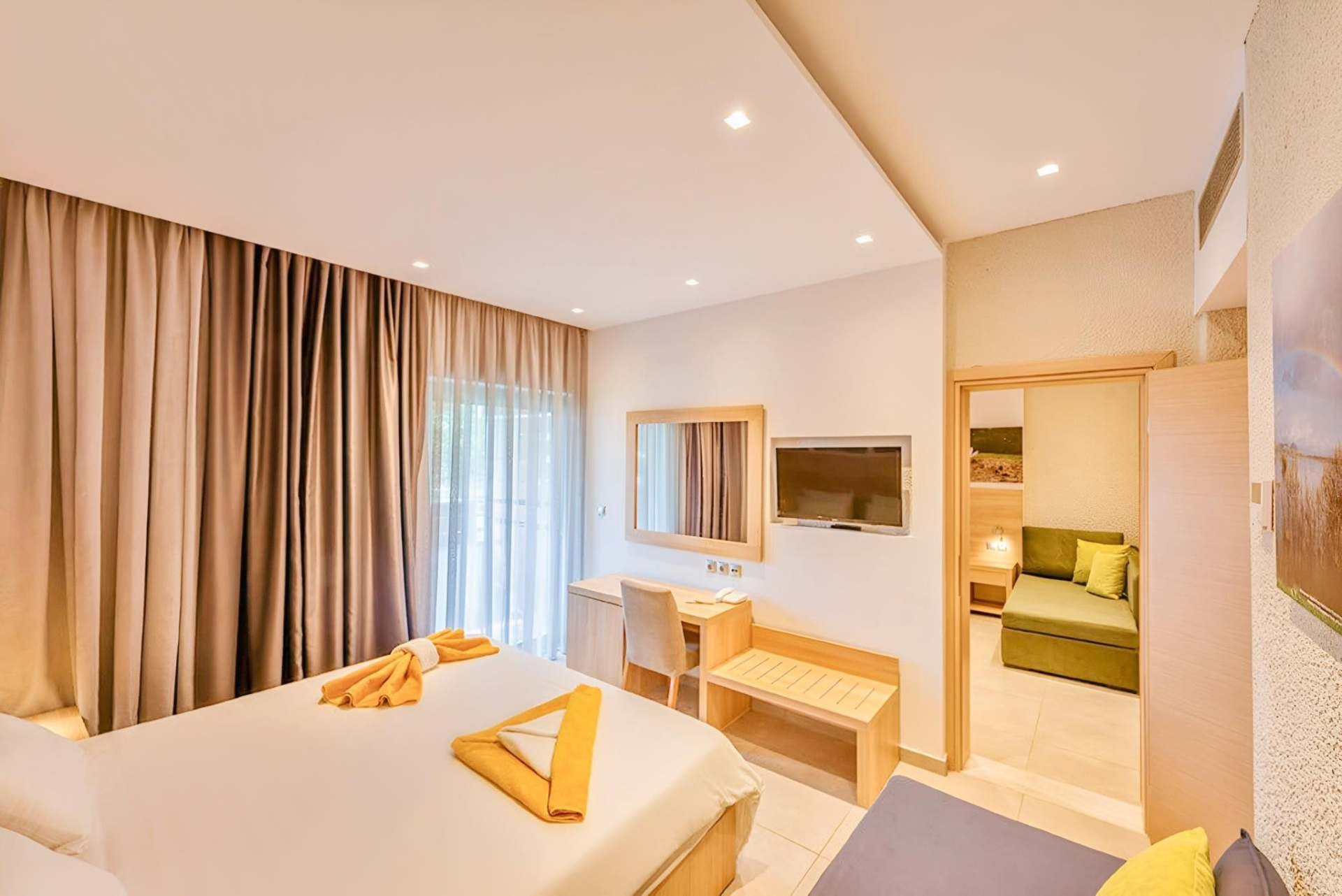 A komplexum a gyönyörű környezetben található, közvetlenül a széles Kalogria homokos strand mellett, amely egy védett természeti terület része, dűnékkel, fenyőerdőkkel és lagúnákkal. A létesítméy egy főépületből és több melléképületből áll, amelyek egy hatalmas kertben helyezkednek el. Animációs és szórakoztató programok, több medence, játszótér, miniklub és számos sportolási lehetőség várja a vendégeket. Lassan mélyülő homokos tsrandja és aqua parkja miatt is ideális választás gyerekes családok számára.