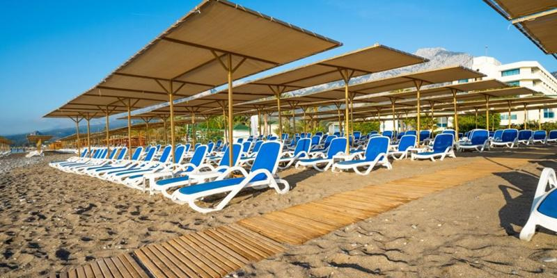 TENGERPART: kb. 90 m a szállodától • homokos-kavicsos • napernyők, napozóágyak és strandtörölközők ingyenesen