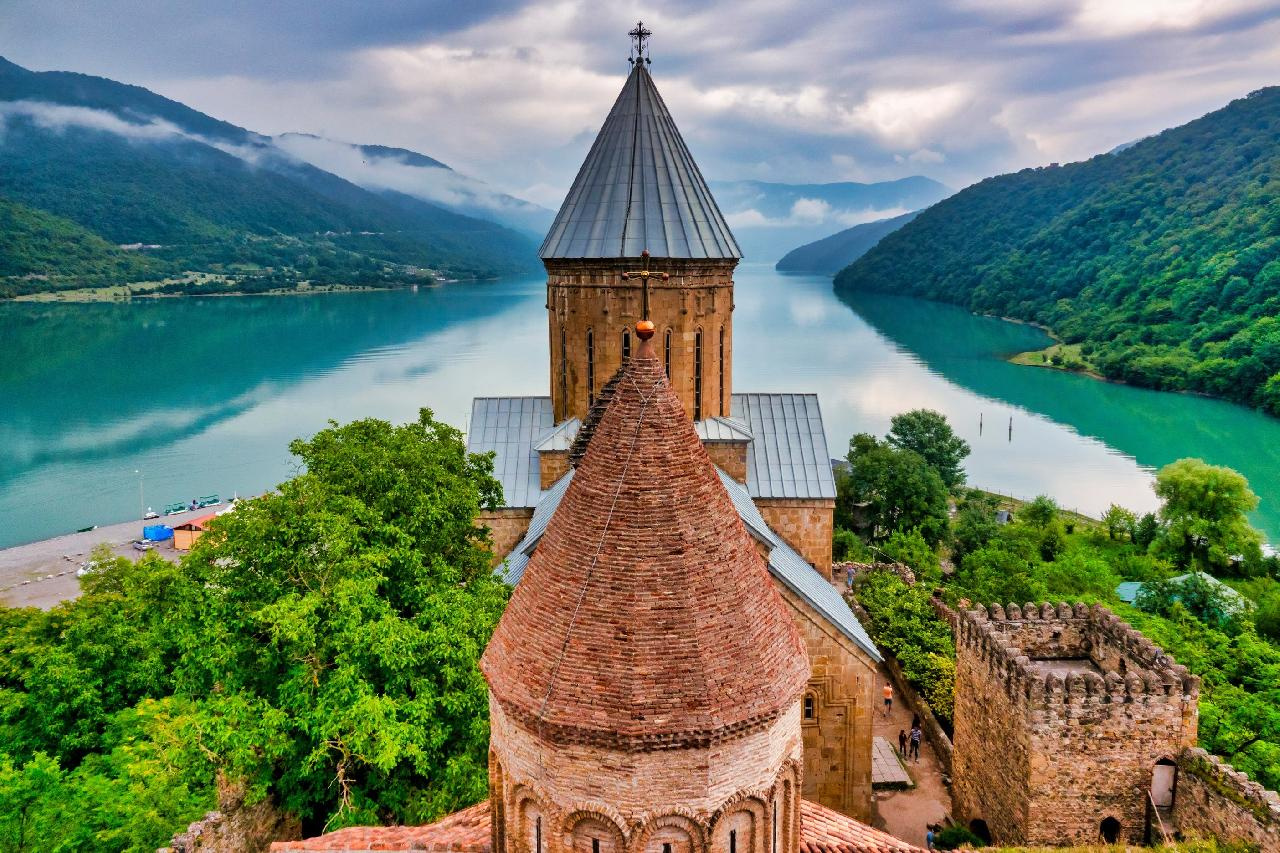 Kirándulás a Kaukázus bércei között. Elsőként a híres „Grúz hadi út” mentén fekvő ANANURI épületegyütteséhez vezet utunk, mely Grúzia egyik legősibb családjának, az Aragvi hercegeknek a rezidenciája volt. Időjárás függvényében továbbutazás kisbusszal a 2.170 m magasságban található Gergeti Szentháromság templomhoz, lenyűgöző völgyeken, erdős tájakon és hágókon keresztül. Vacsora, majd irány a szállás Tbilisziben.