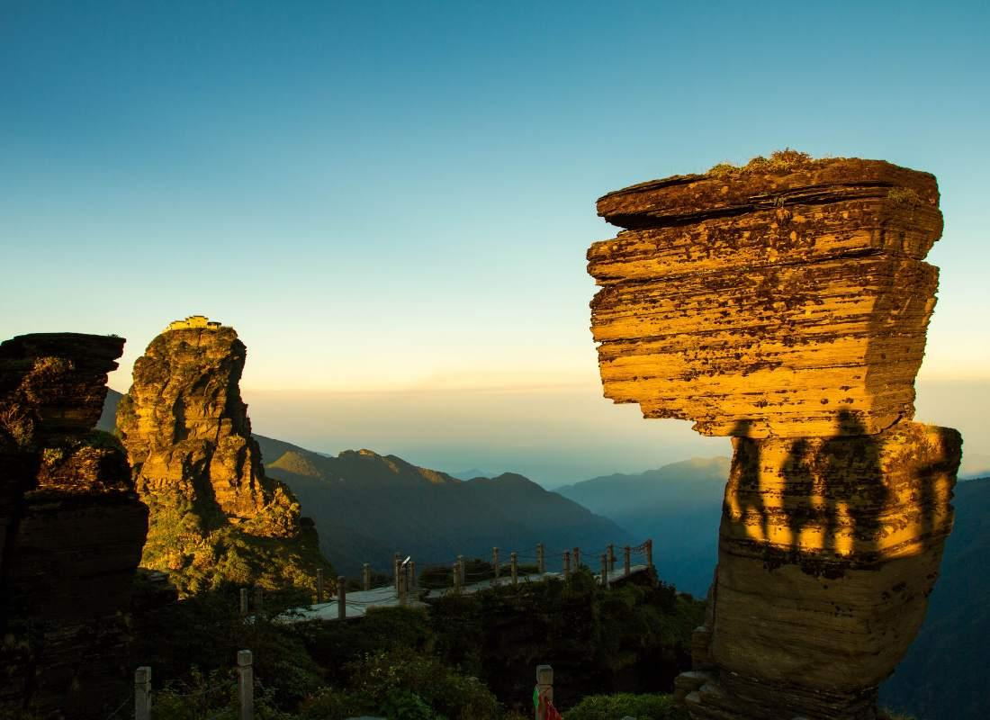 Reggeli után a Fancsing-hegy világörökségi buddhista templomainak felfedezése következik. A 7-10. század között számtalan templomot építettek itt szintén a megvilágosodást keresve, sajnos mára már csak néhány maradt fenn belőlük. A Vörös felhők arany csúcsa közel száz méterrel magasodik a környező hegyek fölé, láthatjuk még a Régi arany csúcsot, a Fancsingsan templomot, és a 330 méter magas szikla tetején álló két aprócska templomot, melyet a sziklahasadék felett egy parányi kőhíd köt össze. A hegy csúcsára 8000 lépcső vezet, de ennek egy részét kabinos felvonóval tesszük meg. Érdemes felmenni, ha gyönyörködni szeretnénk a mesebeli táj szépségében. Vacsora egy helyi étteremben.