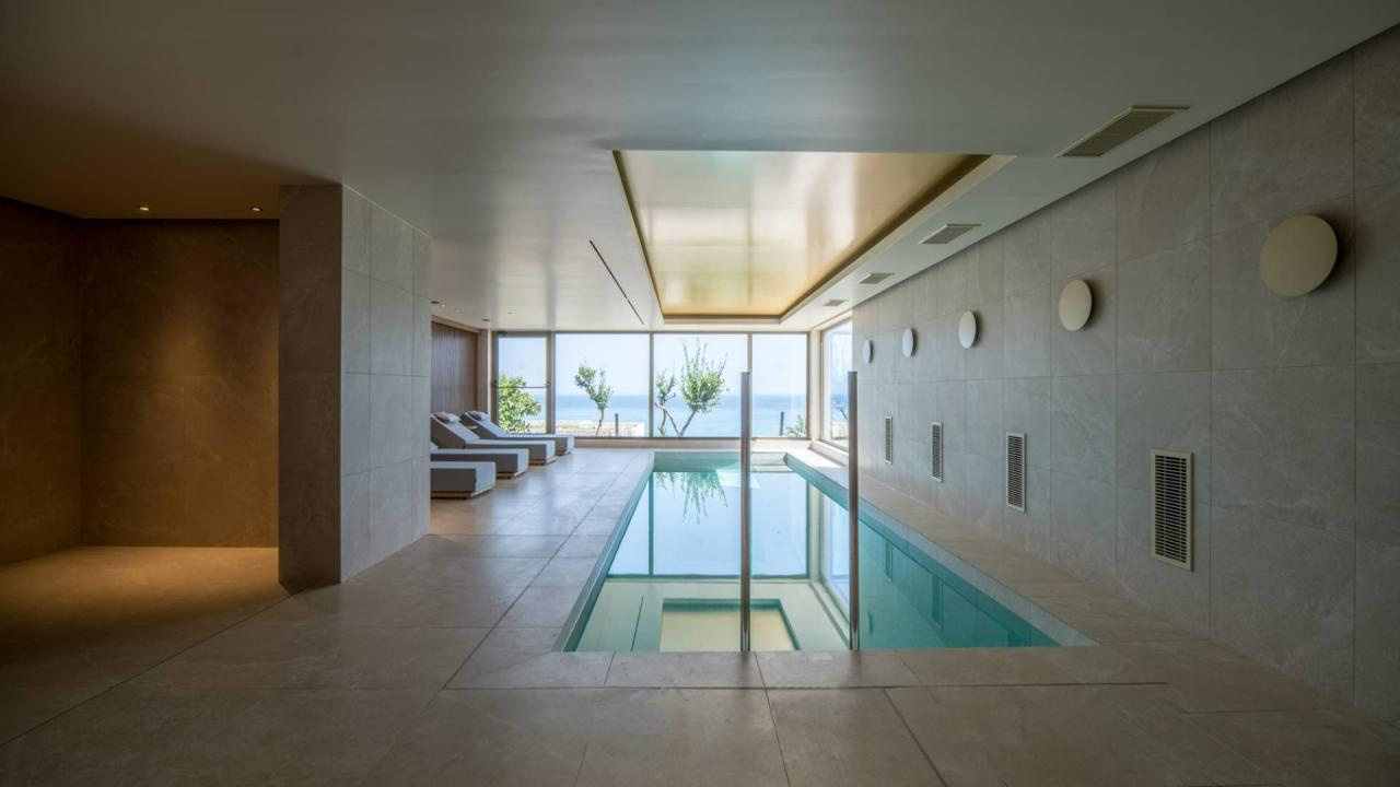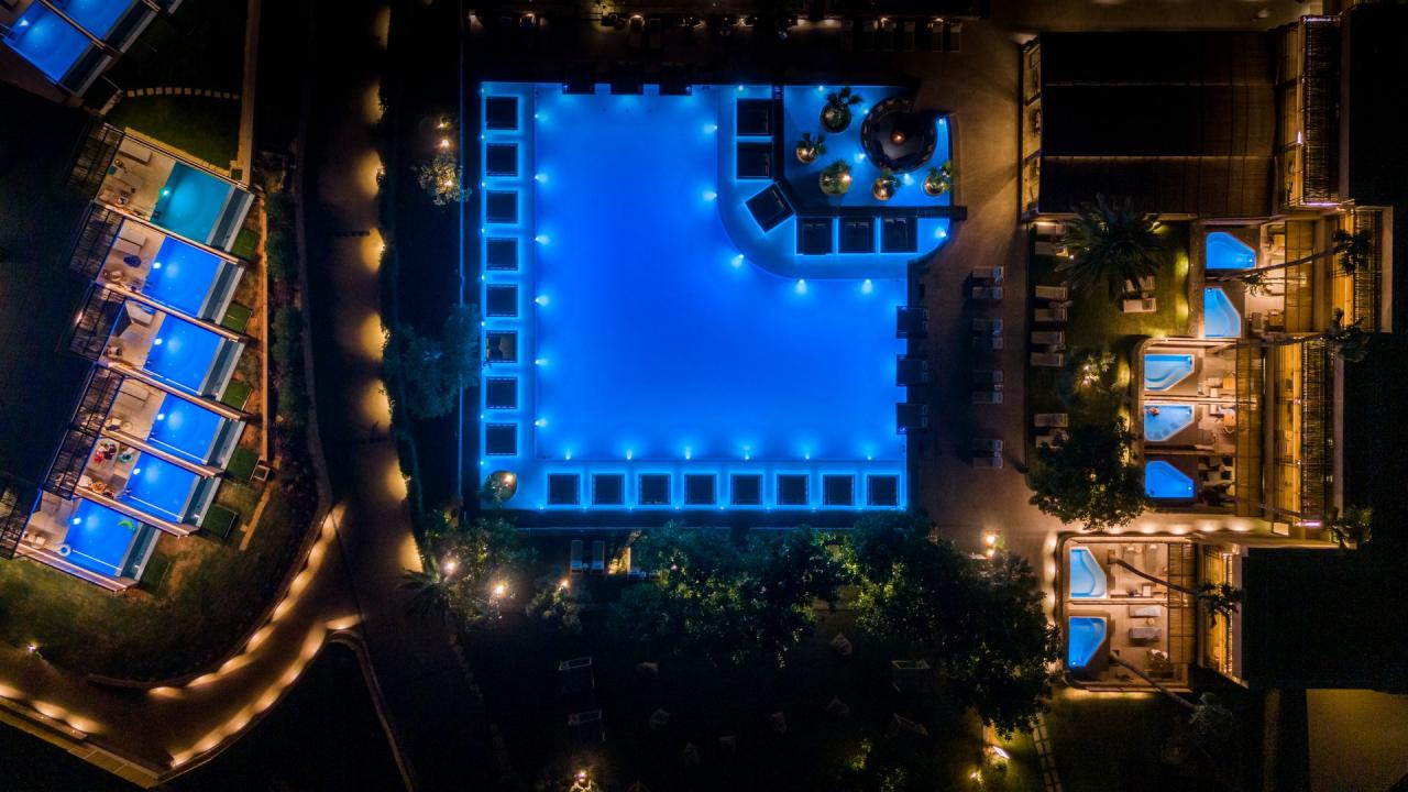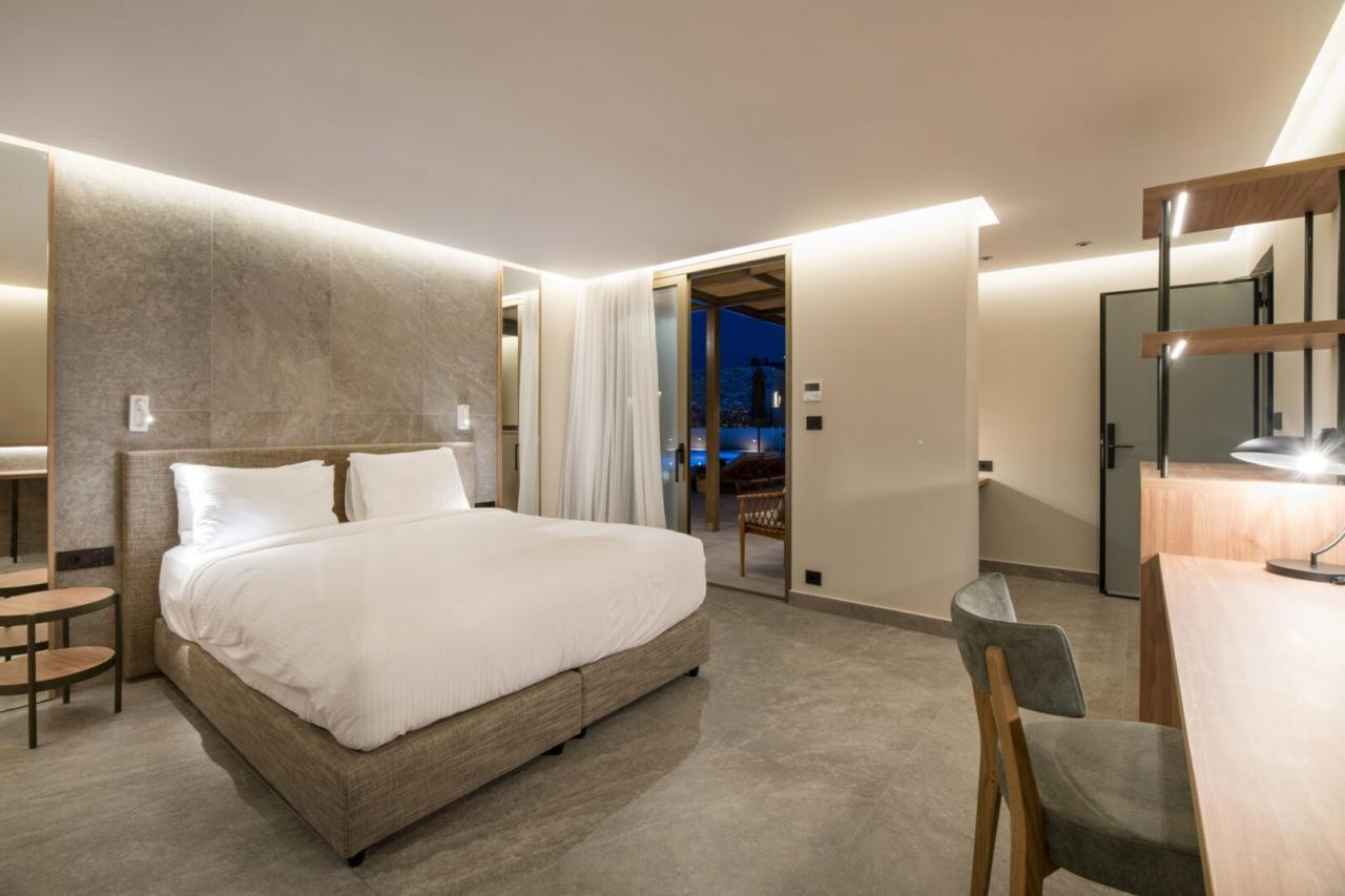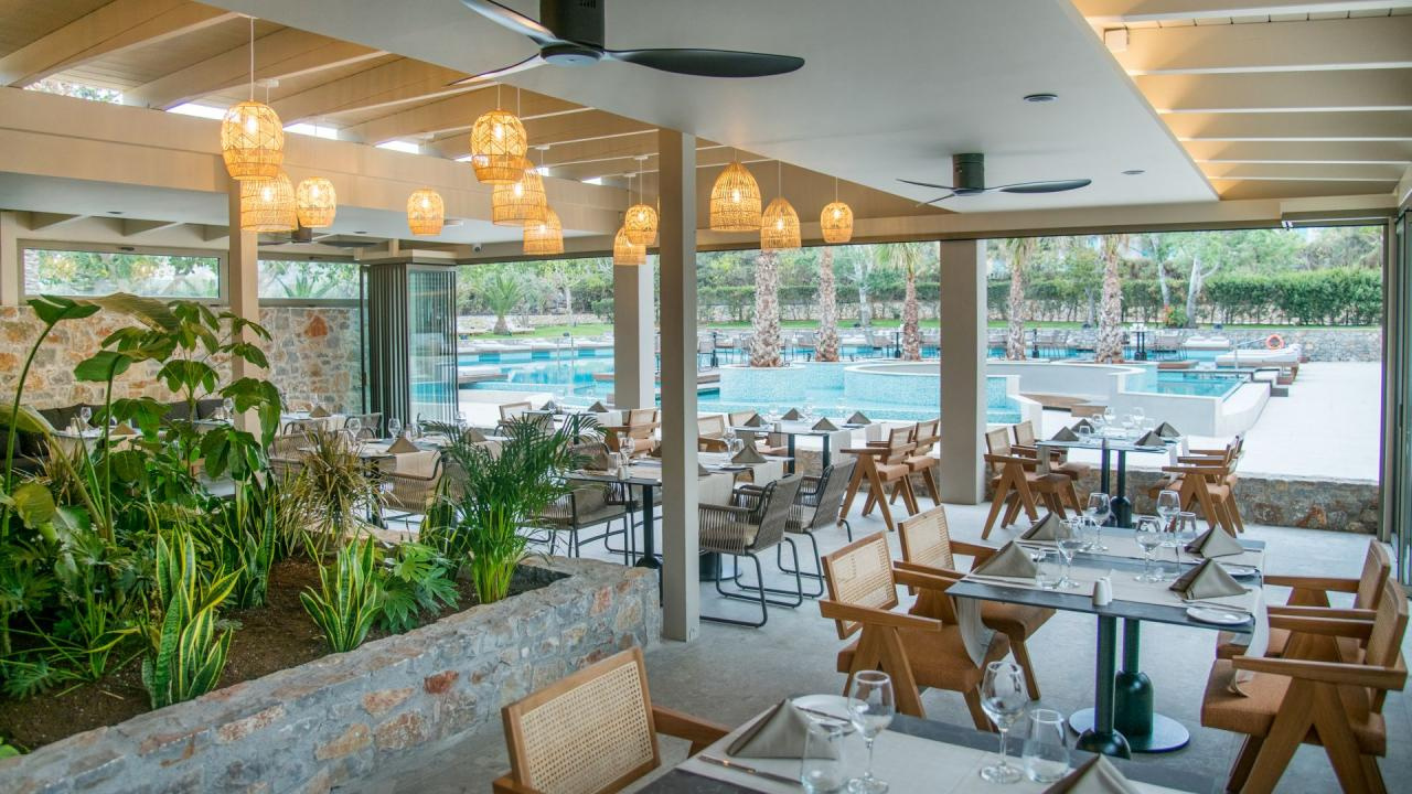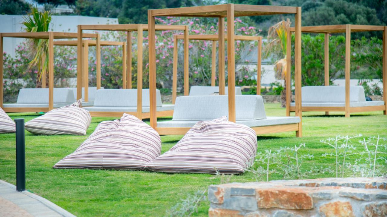 Az épületegyüttes amfiteátrálisan emelkedik a zöldellő domboldalon, ahonnan akadálytalan kilátás nyílik a tengerre. A főépületben kaptak helyet a classic szobák és lakosztályok, míg a színes kertben szétszórva számos bungaló található saját medencével vagy kültéri jacuzzival.