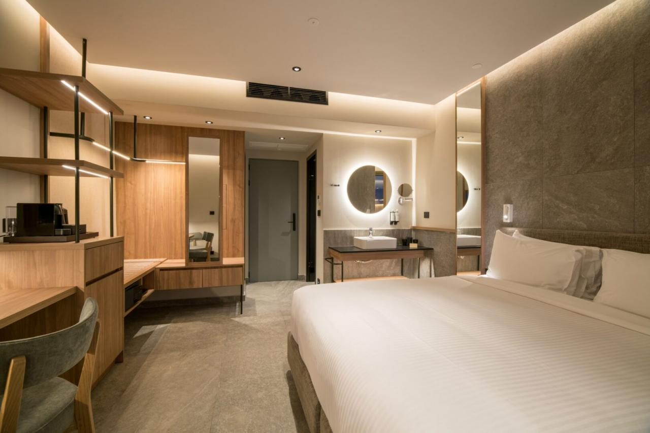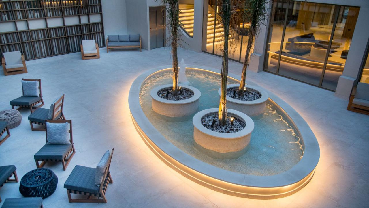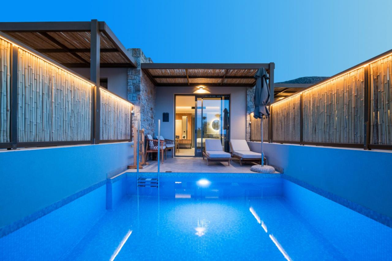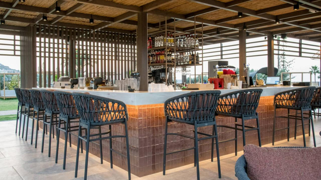 Az épületegyüttes amfiteátrálisan emelkedik a zöldellő domboldalon, ahonnan akadálytalan kilátás nyílik a tengerre. A főépületben kaptak helyet a classic szobák és lakosztályok, míg a színes kertben szétszórva számos bungaló található saját medencével vagy kültéri jacuzzival.