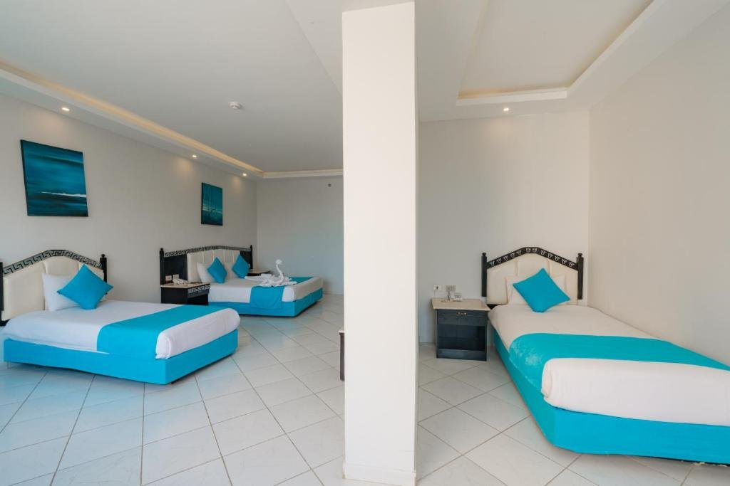 SZOBÁK: 135 tágas szoba, beleértve 5 családi szoba (2 felnőtt + 3 gyerek), nemdohányzó szobák, Vörös-tengerre néző szobák, saját erkély, egyénileg szabályozható légkondicionáló, minibár, telefon, hajszárító, műholdas TV, áram 220V / 50 ciklus.