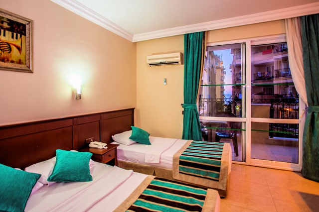 Fekvése: A helyi besorolás szerinti 4 csillagos, 2013-ban felújított hotel a méltán híres Kleopatra Beach-en helyezkedik el, 118 km-re az antalyai repülőtértől és 1 km-re Alanya belvárosától. A szálloda saját strandszakasza mindössze 50m-re fekszik. Szolgáltatások: medence elkülönített gyerekrésszel, napernyőkkel és napozóágyakkal, 2 csúszda, étterem, 2 bár, miniklub (4-12 éveseknek) nappali és esti animációs programok, törökfürdő, asztalitenisz, darts, strandröplabda, tv-szoba, wifi kapcsolat. Térítés ellenében: szépségszalon és a törökfürdő szolgáltatásai, szauna, masszázs, bőrradírozás, biliárd, internetkávézó, vízi sportok, orvos, mosoda. A strandon a napozóágyak és a napernyők térítés ellenében vehetőek igénybe. Elhelyezés: a szobák mindegyike rendelkezik egyénileg szabályozható légkondicionálóval, műholdas tv-vel, telefonnal, hajszárítóval, bérelhető széffel, minibárral, valamint erkéllyel. A standard szobák max. 3 felnőtt + 1 gyermek részére, az családi szobák max. 4 felnőtt + 1 gyermek részére foglalhatók egy hálószobából és egy nappali részből állnak. Ellátás: all inclusive: reggeli, ebéd és vacsora büférendszerben, snackek, kávé, sütemények, helyi alkoholos és alkoholmentes italok (10:00-23:00 között). Térítés ellenében: import italok, frissen facsart gyümölcslevek, török kávé, cappuchino, presszó kávé, fagylalt, fogyasztás a minibárból, fogyasztás a strandon, szobaszerviz, a’la carte ebéd és vacsora a snack bárban vagy a parton.Egyéb: