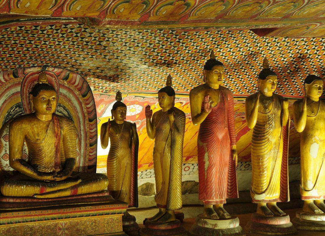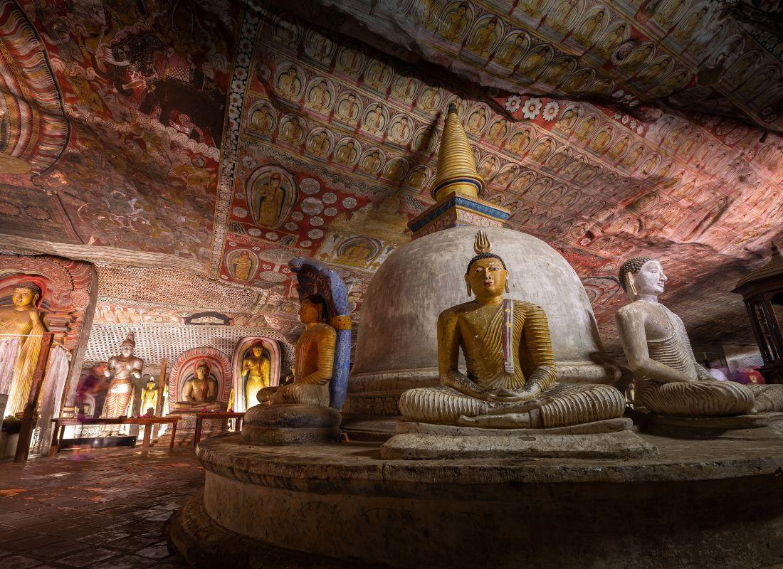 UNESCO világörökségi védettséget élvező szentélyek csarnokait díszítő freskók és szobrok a buddhista művészet páratlan darabjai.