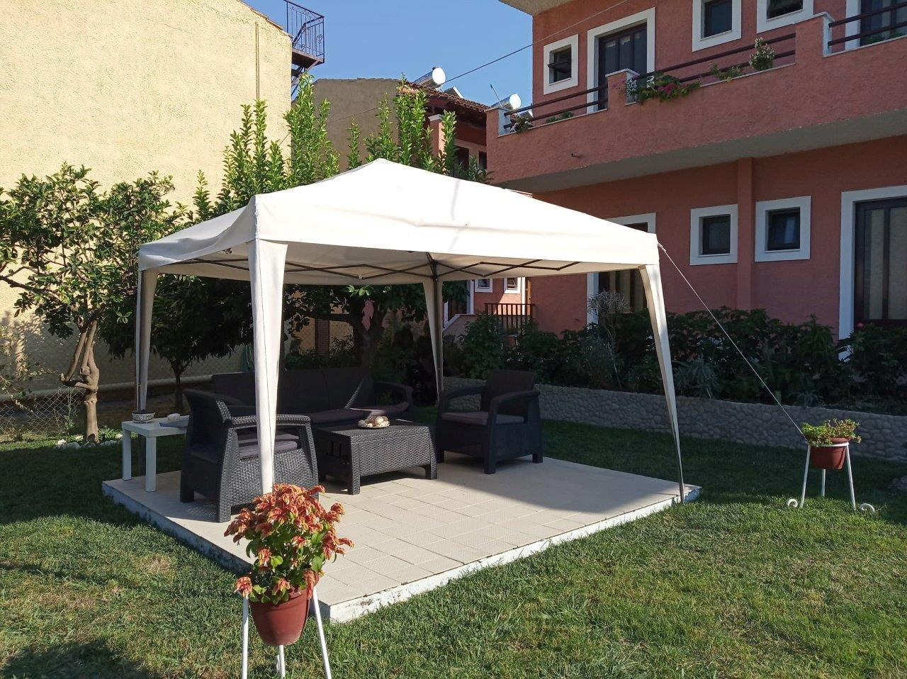 Az apartmanház ideális környezetben, a Messonghi folyó mellett, az üdülőhely központjában, de csendes helyen helyezkedik el, kb. 350 méterre a tengertől. A szállás közelében üzletek, éttermek, szupermarketek elérhetőek. Moraitika központja is csak 500 méter.