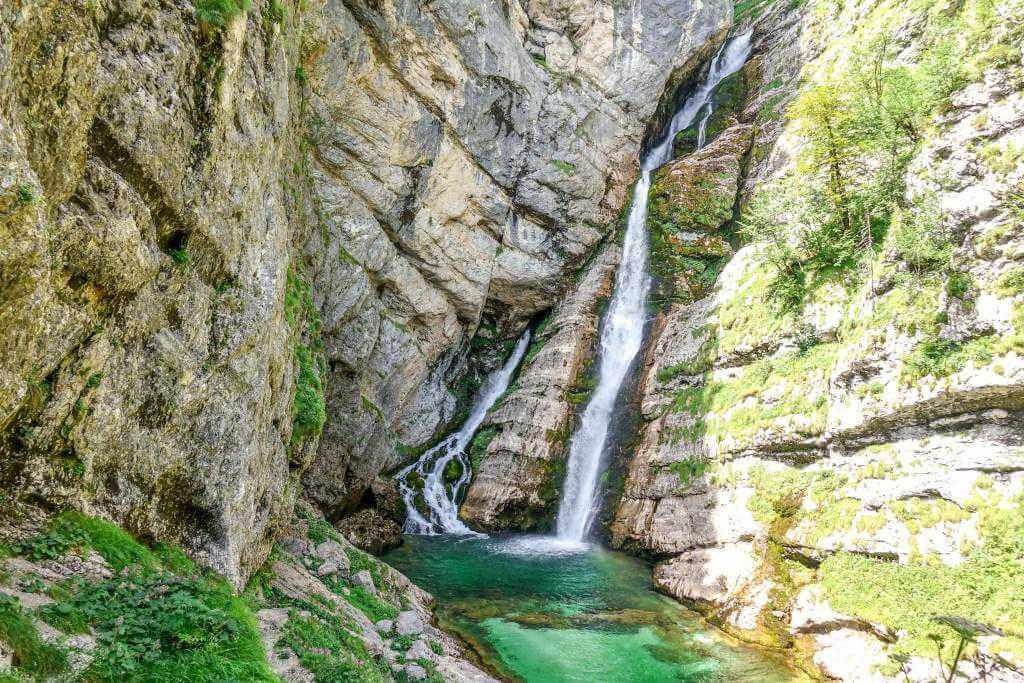 Savica (Száva) vízeséshez. Szlovénia egyik legismertebb vízeséséhez kb. 550 lépcső vezet fel, ám több helyen lehetőség nyílik megpihenni. A látvány pedig mindenért kárpótol. A folyó egy karsztbarlangból tör elő. A fehéren tajtékzó víz egy smaragdzöld színű medencébe zuhog, aztán egy újabb lépcsőben folytatja útját a mélyben.
