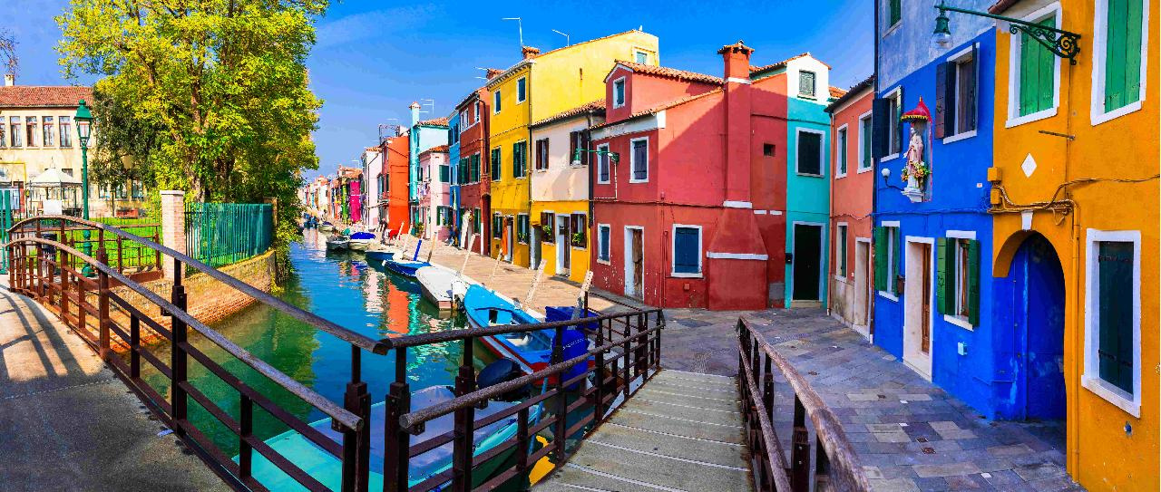 Hajókirándulás a festői szigetekre. MURANO hasonlóan Velencéhez több kisebb szigetből áll, hidakkal összekötve. A XIII. századtól az üvegkészítés központja, néhány vízparti épület ebből a korból maradt fenn. BURANO a lagúnák legfestőibb szigete, már messziről felismerhető templomának megdőlt tornyáról. A népes sziget vízpartja mentén élénk színű házak sorakoznak. TORCELLO mondhatja magáénak a lagúnák legrégebbi épületét, a VII. század elején épült Santa Mariadell’ Assunta dómot.