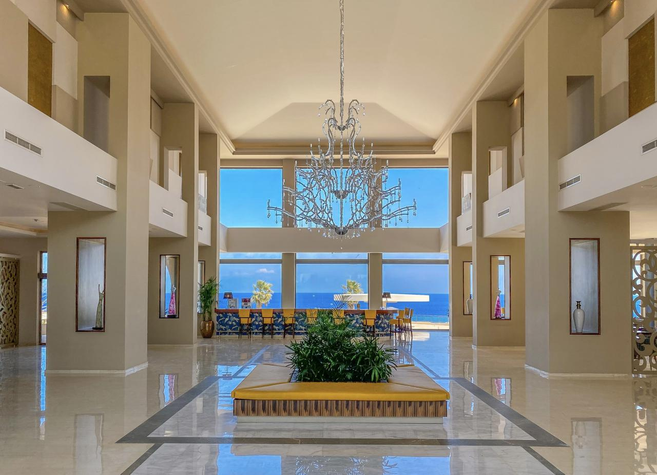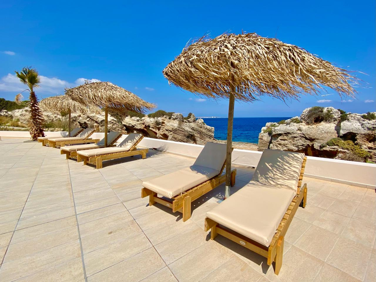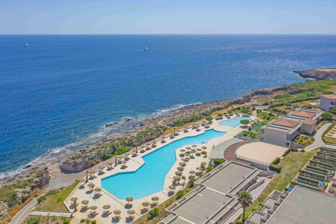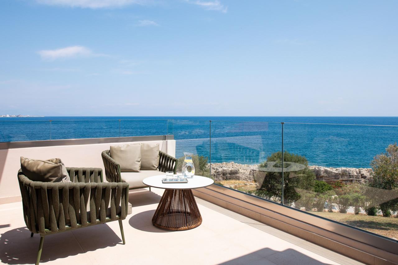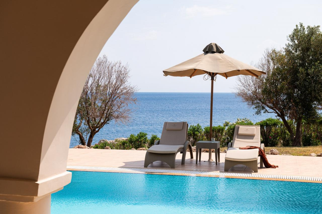 Privát medencés junior lakosztály („Junior Suite Sea View Private Pool”): 52 m2, egy légterű, saját medence napozóágyakkal, tengerre néző szoba