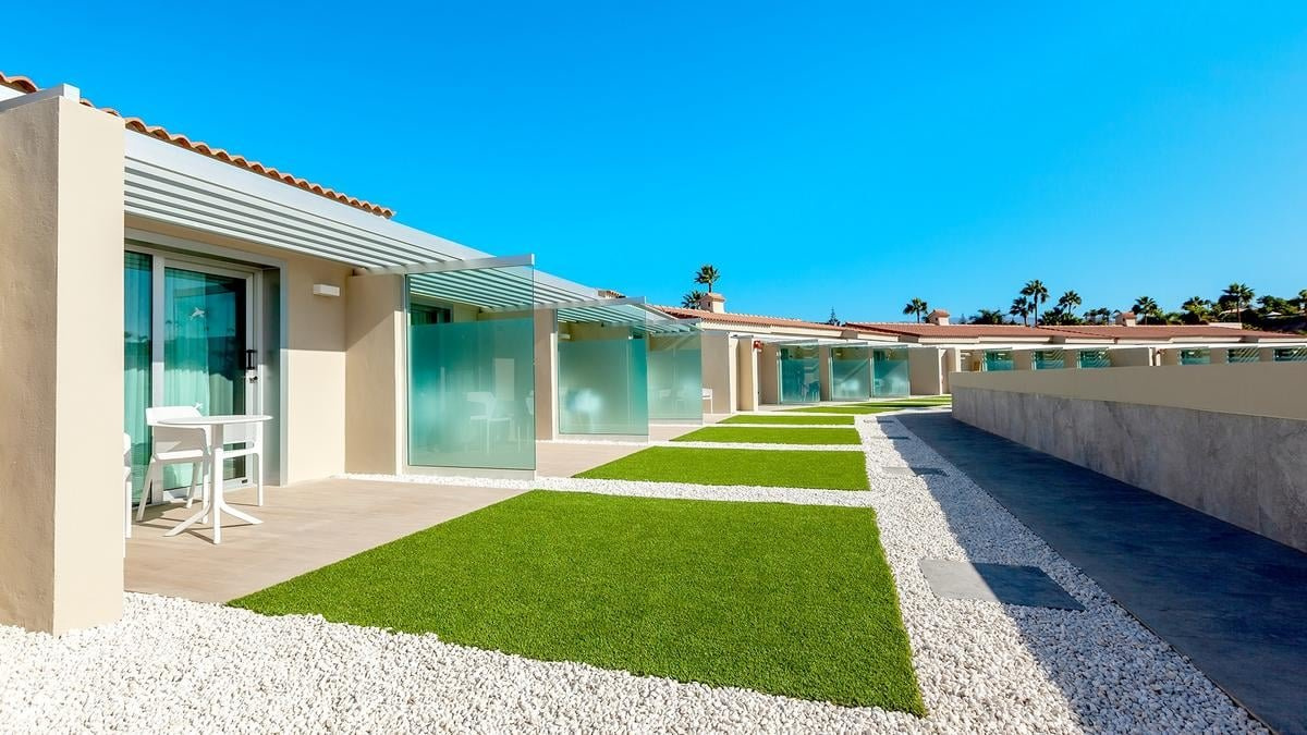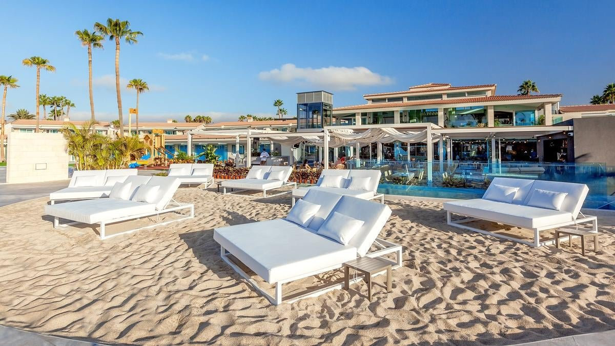 Maspalomas nyilvános, kék zászlóval kitüntetett homokos strandja kb. 3,5 km-re fekszik a hoteltől, melyet egy úton keresztül lehet megközelíteni, vagy a szálloda ingyenes buszjáratával. A strandon térítés ellenében napágyak és napernyők elérhetőek.