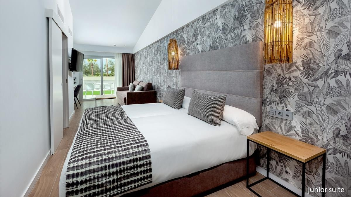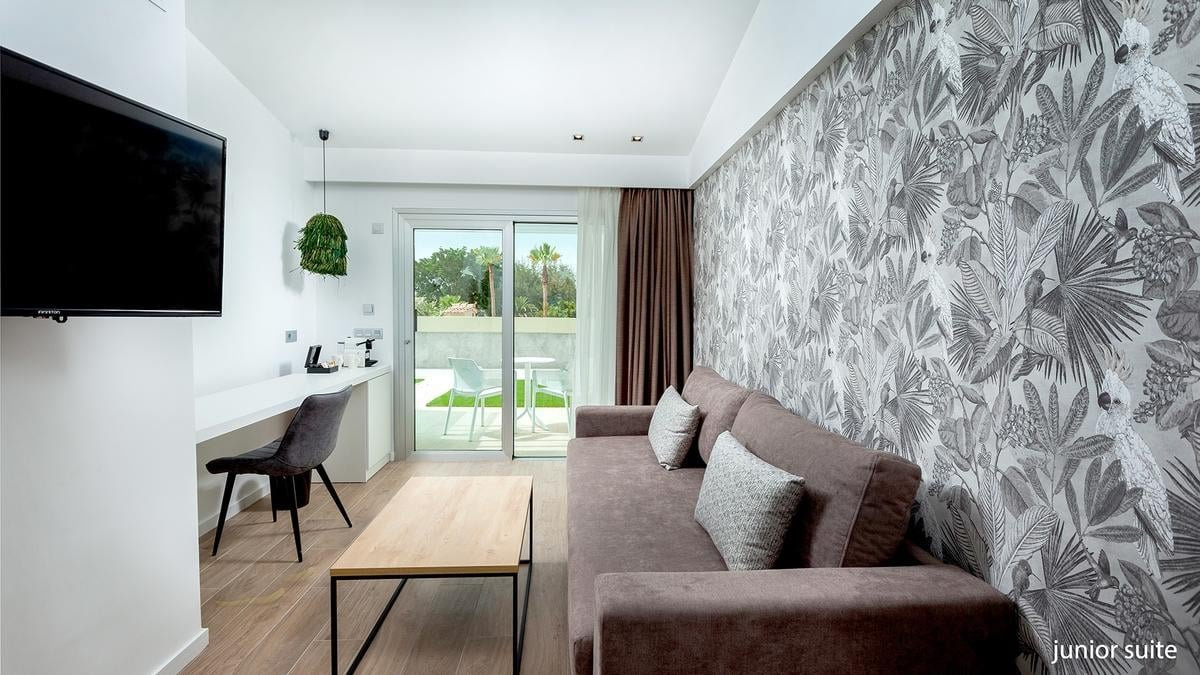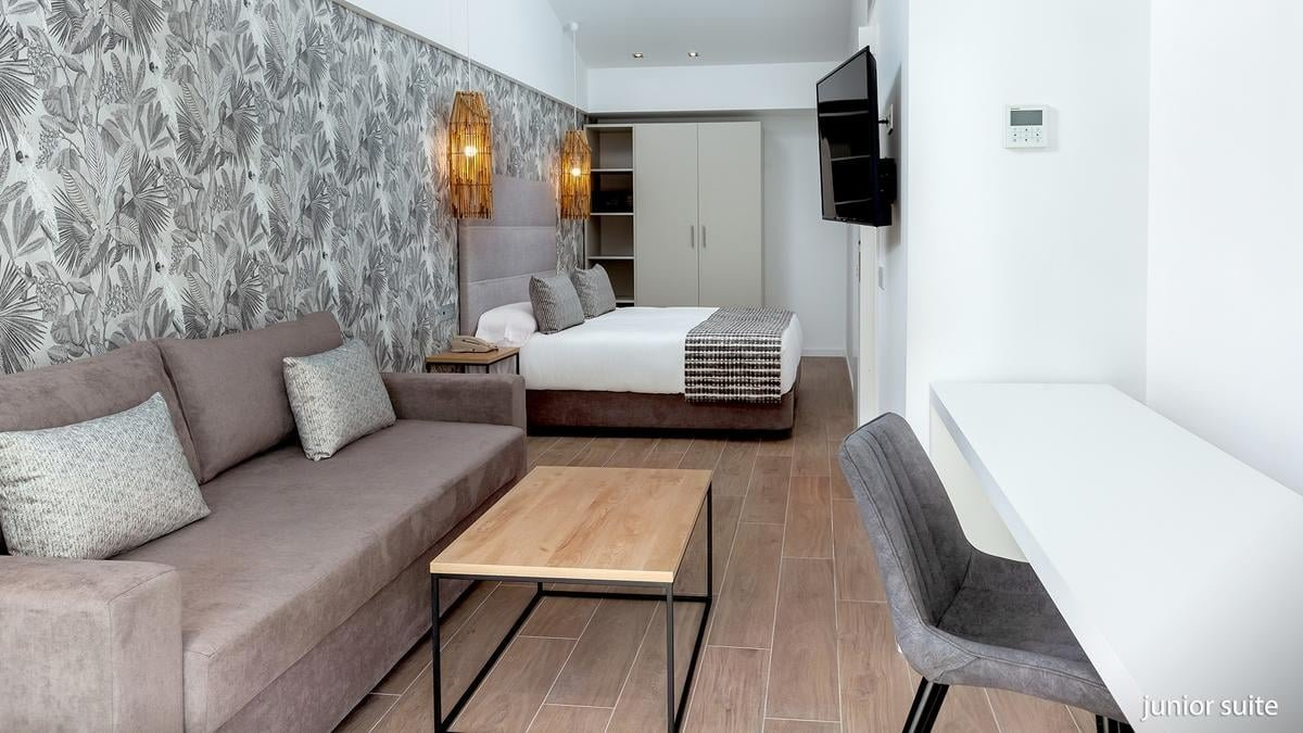 Két fős junior suite: kb. 27-33 m² légkondicionált, fürdőszoba (zuhanyzó, WC, hajszárító) WIFI, műholdas televízió, telefonkávé/teafőző, vízforraló, ingyenes kiságy 2 év alatti gyermek számára, érkezés előtti kérésre. terasz (asztal és székek), kilátás a medencére térítés ellenében: minibár, széf