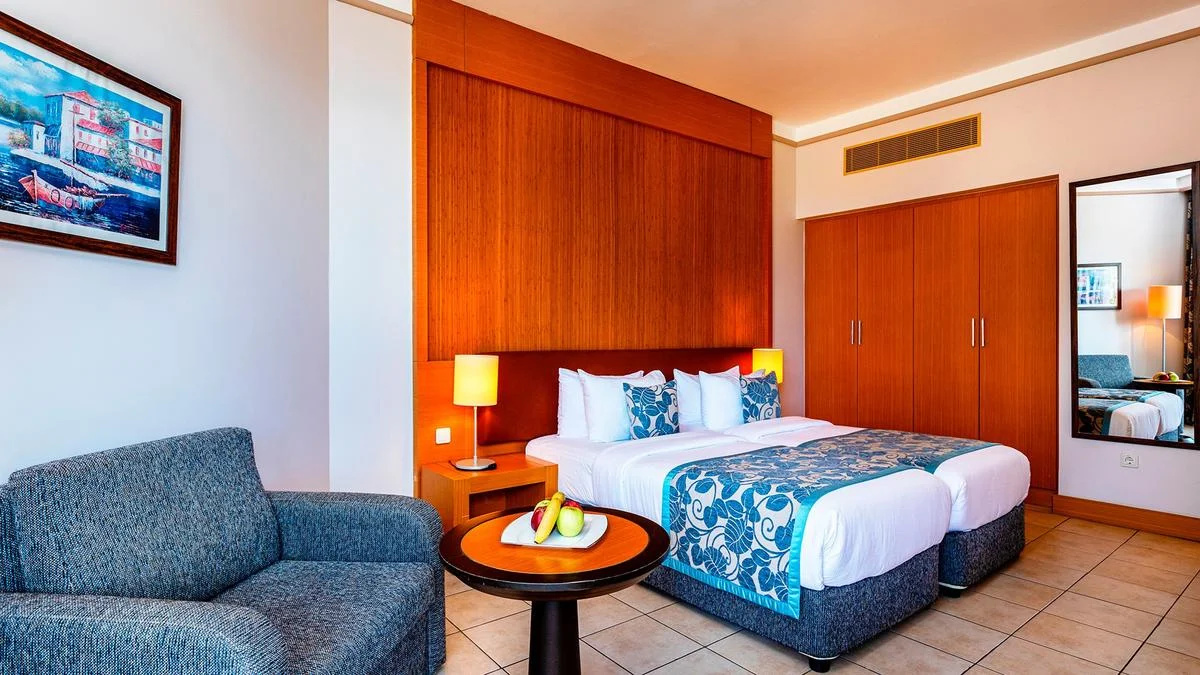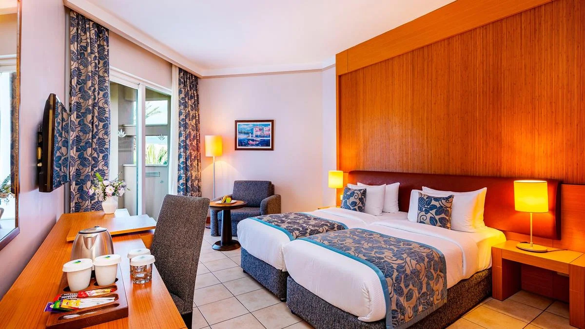 ötcsillagos szezonálisan felújított 350 szoba, 4 épület, 3 emelet, 3 lift tágas lobby 24 órás recepció 50 fő befogadására alkalmas konferencia-központ nagy kert tengerre és kertre néző terasz ingyenes vezeték nélküli internet a nyilvános helyiségekben 20 kg-ig háziállatok is szívesen látottak elfogadott hitelkártyák: Visa, MasterCard, American Express Kétágyas szoba 2 fő (1 pótágy felnőtt vagy 2 pótágy gyermek számára) kb. 28 m² légkondicionált fürdőszoba (zuhany, WC, hajszárító) vezeték nélküli internet TV széf kávé/tea készítési lehetőség minibár (ingyenes víz) ingyenes kiságy 2 éves kor alatti gyermekek számára (érkezés előtt kérésre) erkély (asztal és székek)