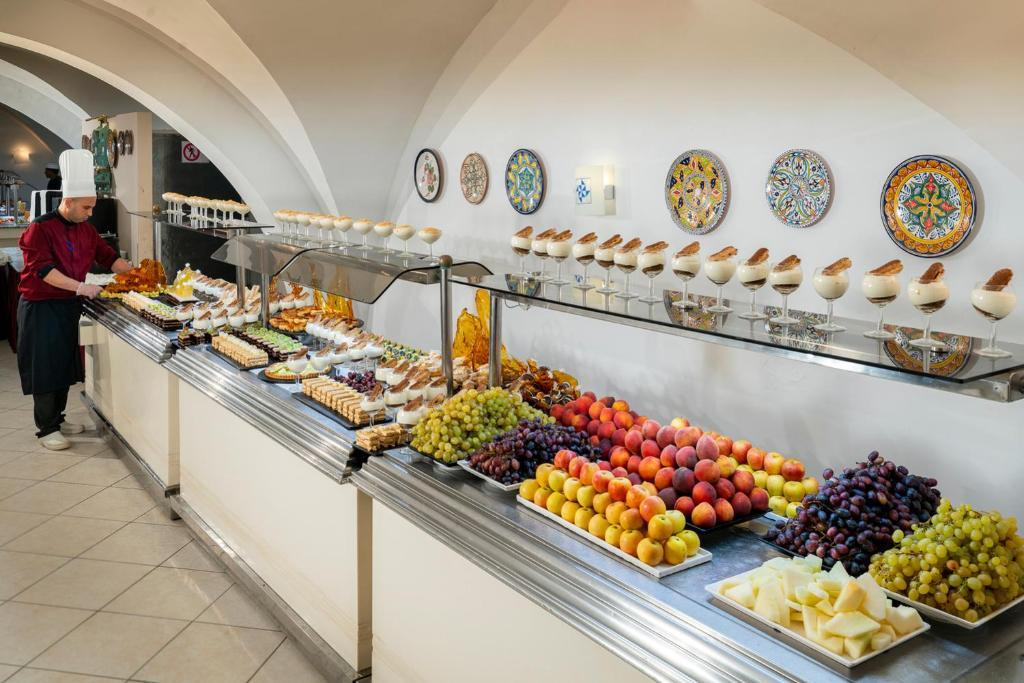 All inclusive ellátással foglalható, mely tartalmazza a reggelit, késői reggelit, ebédet, vacsorát, éjszakai snacket és helyi alkoholos– és alkoholmentes italokat. Napközben snackételeket, édességeket, gyümölcsöt, pizzát, szendvicset, kávét és teát kínálnak. A tunéziai, tematikus étteremben a vendégek előzetes foglalás esetén, térítés ellenében vacsorázhatnak. A szálloda számos bárral rendelkezik, melyekből a Queen Vic Pub és a mór kávézó csak felár ellenében vehető igénybe.