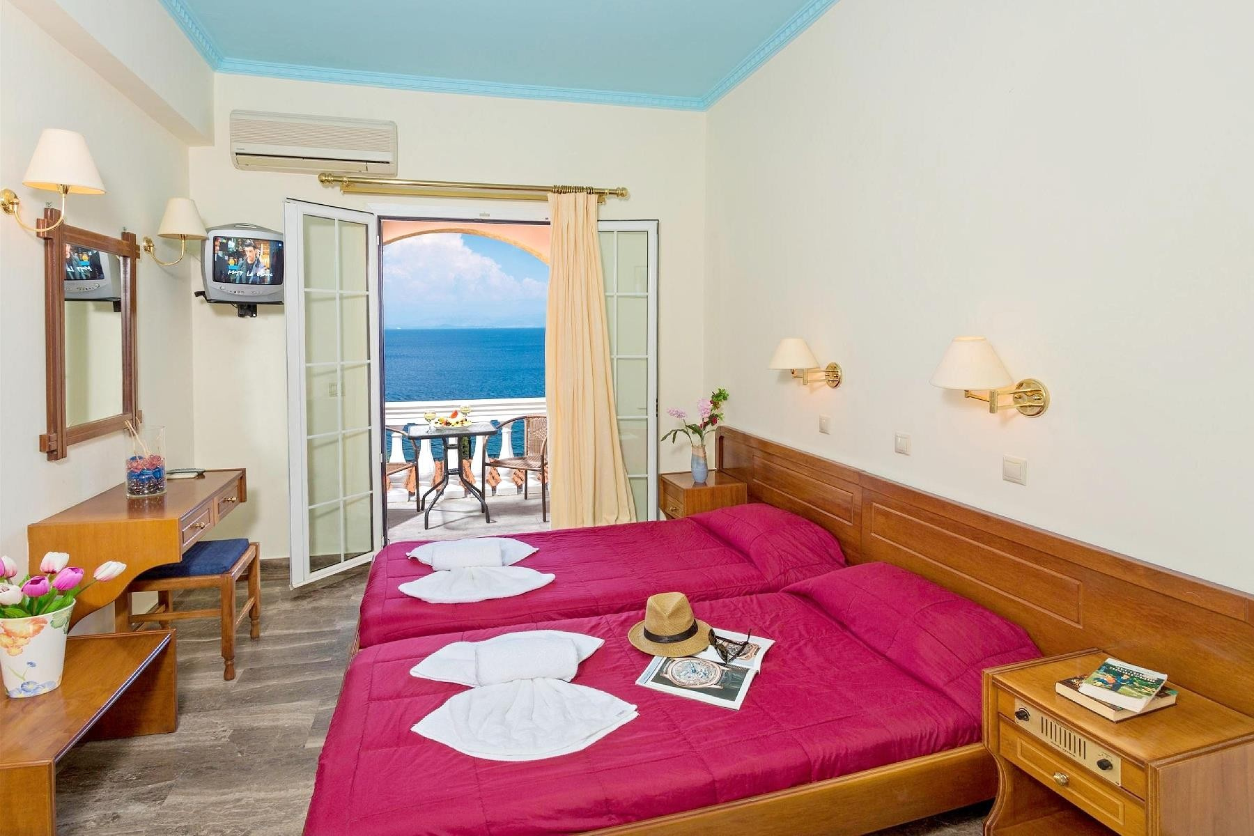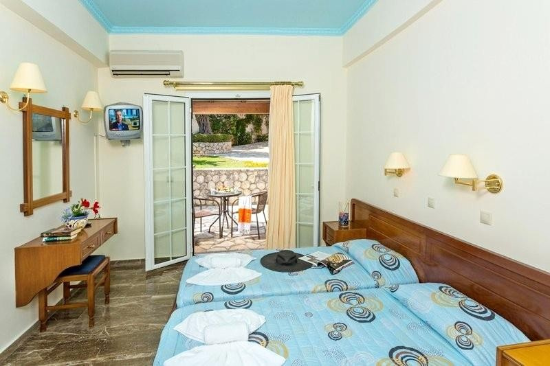 A domboldalba épült, tradicionális stílusú szállodából csodálatos kilátás nyílik a Jón-tengerre. A strand egy kis úton át érhető el. A szépen kialakított létesítményben kitűnő szolgátatásokkal várják a vendégeket. A közeli Benitsesben számos étterem, bár és üzlet található. Közvetlenül a szálloda előtt található egy buszmegálló. Minden korosztály számára ajánljuk.