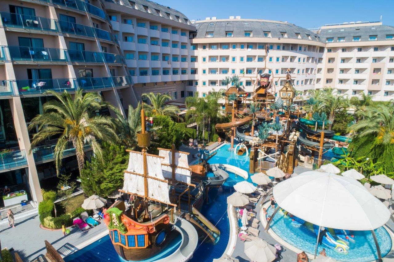 Fekvése: A Long Beach Resort & Spa Hotel - mely a Török Riviéra alanyai régiójának egyik legnagyobb és legkedveltebb szállodája - impozáns kialakításával, csúszdaparkjával, tengervizes medencéjével, vendégszerető személyzetével és széleskörű szolgáltatásaival vonzza évről évre vendégeit. Itt mindenki megtalálhatja a számára megfelelő szórakozást; a számtalan program mellett gyermekeinek is feledhetetlen nyaralásban lesz része, a szálloda közvetlen közelében található delfináriumban pedig mókás előadásokat láthatunk, vagy a delfinúszás feledhetetlen élményét is megtapasztalhatjuk. A 2006-ban megnyílt, 9 szintes, csaknem 2.000 férőhelyes 5 csillagos komplexum az antalyai repülőtértől 90 km-re, Alanyától 20 km-re, Avsallar üdülőhely központjától pedig 5 km-re terül el, 75.000 nm-en. A közeli városokba helyi buszjárattal (dolmussal), vagy taxival könnyedén eljuthatunk. A szállodát 600 m hosszú, homokos-kavicsos tengerpartjától egy út választja el, a strandot a szálloda saját alagútján át lehet megközelíteni. A partszakaszon kisebb-nagyobb kövek előfordulhatnak, ezért fürdőcipő használata javasolt. Szolgáltatások: 3 medence (egyikük tengervizes) napernyőkkel és napozóágyakkal, 2 gyermekmedence, 2 felnőtt és 1 gyermek villa-medence (kizárólag a villavendégek részére), belső medence, felnőtt aquapark 10 csúszdával, külön gyermek aquapark vízi élmények sokaságával, 6 étterem, számos bár, cukrászda, kávézó, sörkert, széleskörű nappali és esti animációs programok, karaokee, tematikus estek, diszkó, mozi, miniklub (4-12 éves korig), mini vidámpark (napi kb. 1 órát üzemel), minidiszkó, játszótér, fitneszterem, törökfürdő, szauna, jakuzzi, asztalitenisz, darts, íjászat, lövészet, aerobik, torna, step aerobik, zumba, vízitorna, strandröplabda, kosárlabda, minigolf, mini futball, 2 teniszpálya, WIFI a szobákban és a komplexum közös helységeiben. A szálloda saját strandján a napozóágyak, napernyők és a strandtörölközők ingyenesen használhatók. Térítés ellenében: széleskörű Spa szolgáltatások, törökfürdő kezelései, különféle masszázsok, vízi sportok, teniszfelszerelés és -pályavilágítás, játékterem, biliárd, bowling, 7D mozi, mosoda, orvosi ellátás, gyermekfelügyelet. Elhelyezés: Az összesen 773 kényelmesen berendezett, tágas szobák, lakosztályok és villák mindegyike központi légkondicionálóval, telefonnal, hajszárítóval, minibárral, vízforralóval, műholdas tévével, WIFI internetkapcsolattal, széffel és erkéllyel felszerelt. A standard szobák maximum kapacitása 3 felnőtt + 1 gyermek. A családi dublex szobák (50-55 nm, max. 4 felnőtt + 1 gyermek) és a családi dublex lakosztályok szobák (75 nm, max. 6 felnőtt + 1 gyermek) a főépületben találhatók, kétszintesek, és két, ajtóval elválasztott hálószobával rendelkeznek. A családi dublex szobákban egy, a dublex lakosztályokban két fürdőszoba található. A villa lakosztályok a villaépületekben helyezkednek el, két külön hálószobával rendelkeznek, a teraszról egy lépcső vezet le a medencéhez. Nászutas vendégei részére a hotel az alábbi szolgáltatásokat ingyenesen biztosítja: nászutas szobai dekoráció, fürdőköpeny, papucs, érkezéskor gyümölcskosár és helyi bor bekészítés a szobában, választott napon reggeli a szobában. Ellátás: Ultra all inclusive: reggeli, ebéd és vacsora büférendszerben, kései reggeli, diétás büfé, gyermekbüfé ebédnél és vacsoránál, délutáni snackek, éjféli snack (23:00-01:00 között), korai kontinentális reggeli (01:00-07:00 között), tea/kávé/sütemények, cukrászda, gözleme, török kávé, fagylalt és gofri (bizonyos időpontban), számos helyi és néhány import alkoholos és alkoholmentes ital (10:00-02:00 között), minibár (érkezéskor üdítőkkel és vízzel, majd naponta vízzel feltöltve). Térítés ellenében: egyéb étel- és italfogyasztás, bizonyos import italok, palackozott és prémiumitalok, szobaszerviz, frissen facsart gyümölcs- és zöldséglevek a vitaminbárban, 3 a’la carte étterem (olasz/török, mexikói és hal; előzetes foglalással).Egyéb: