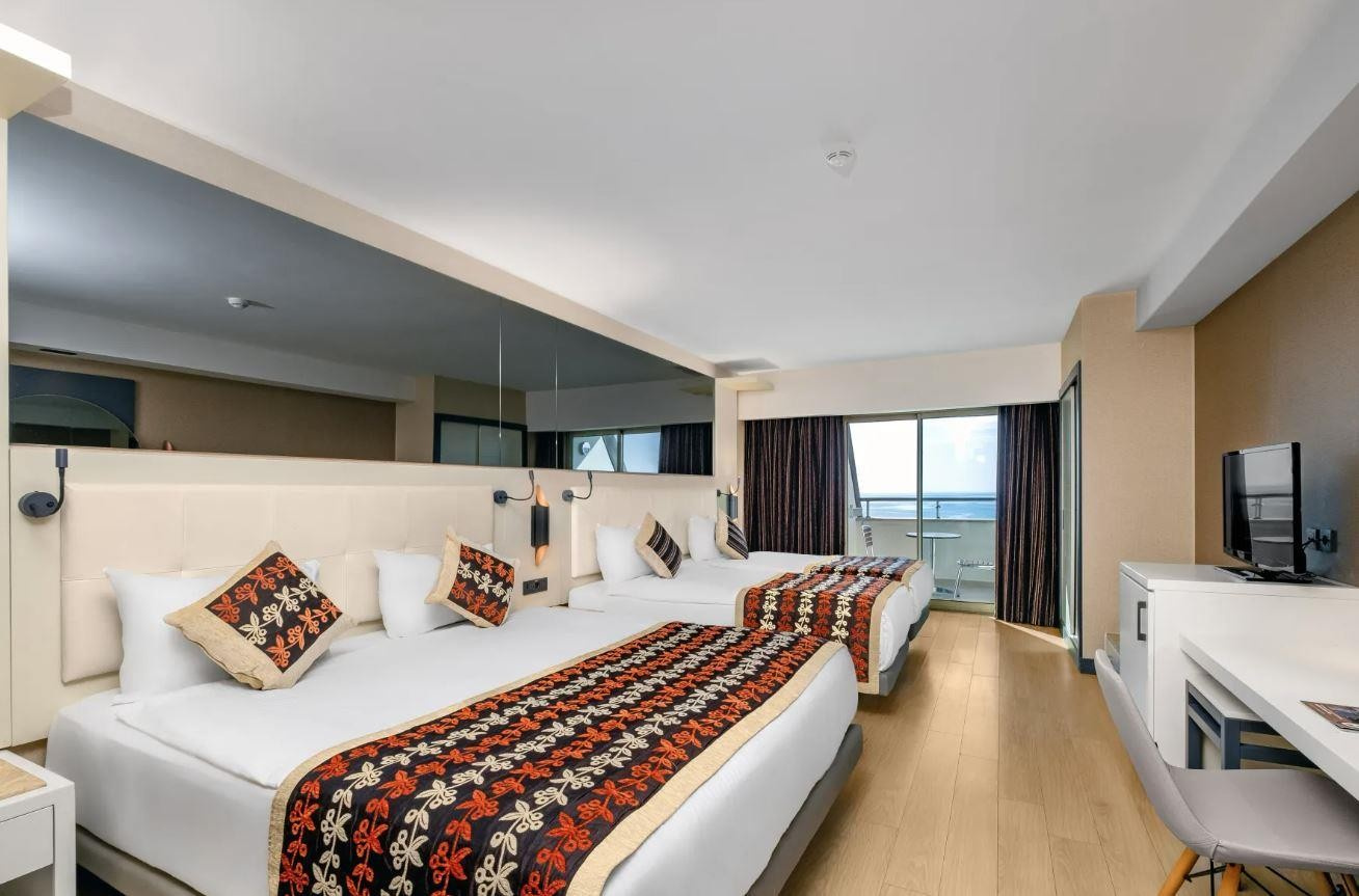 Az igényes szállodában több medence, aquapark és miniklub is várja a vendégeket. A tengerpart egy aluljáron keresztül közelíthető meg. Tökéletes választás az aktív nyaralást kedvelő és családdal utazó vendégeink számára.