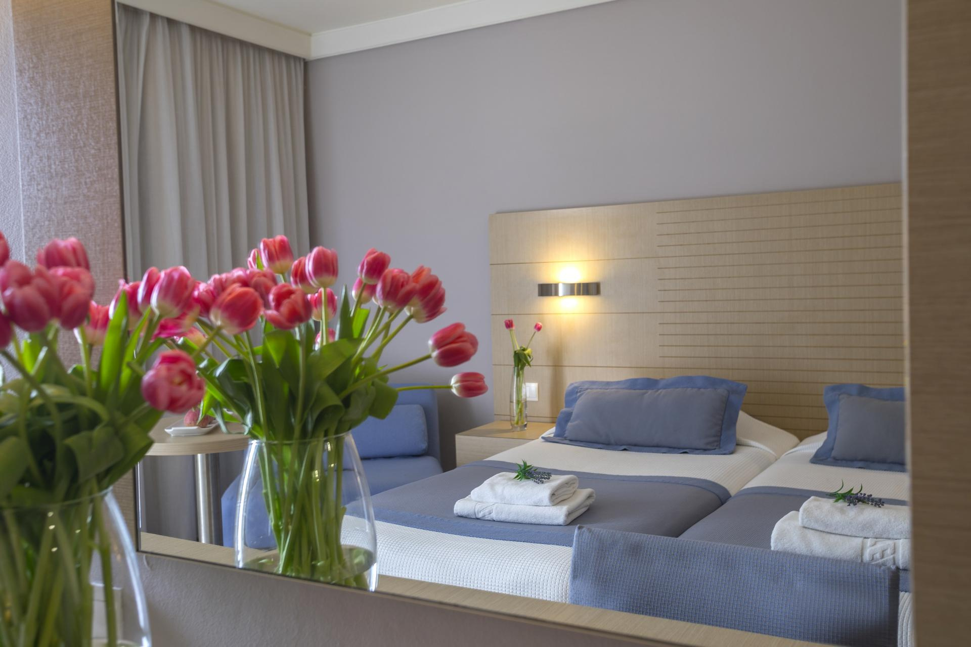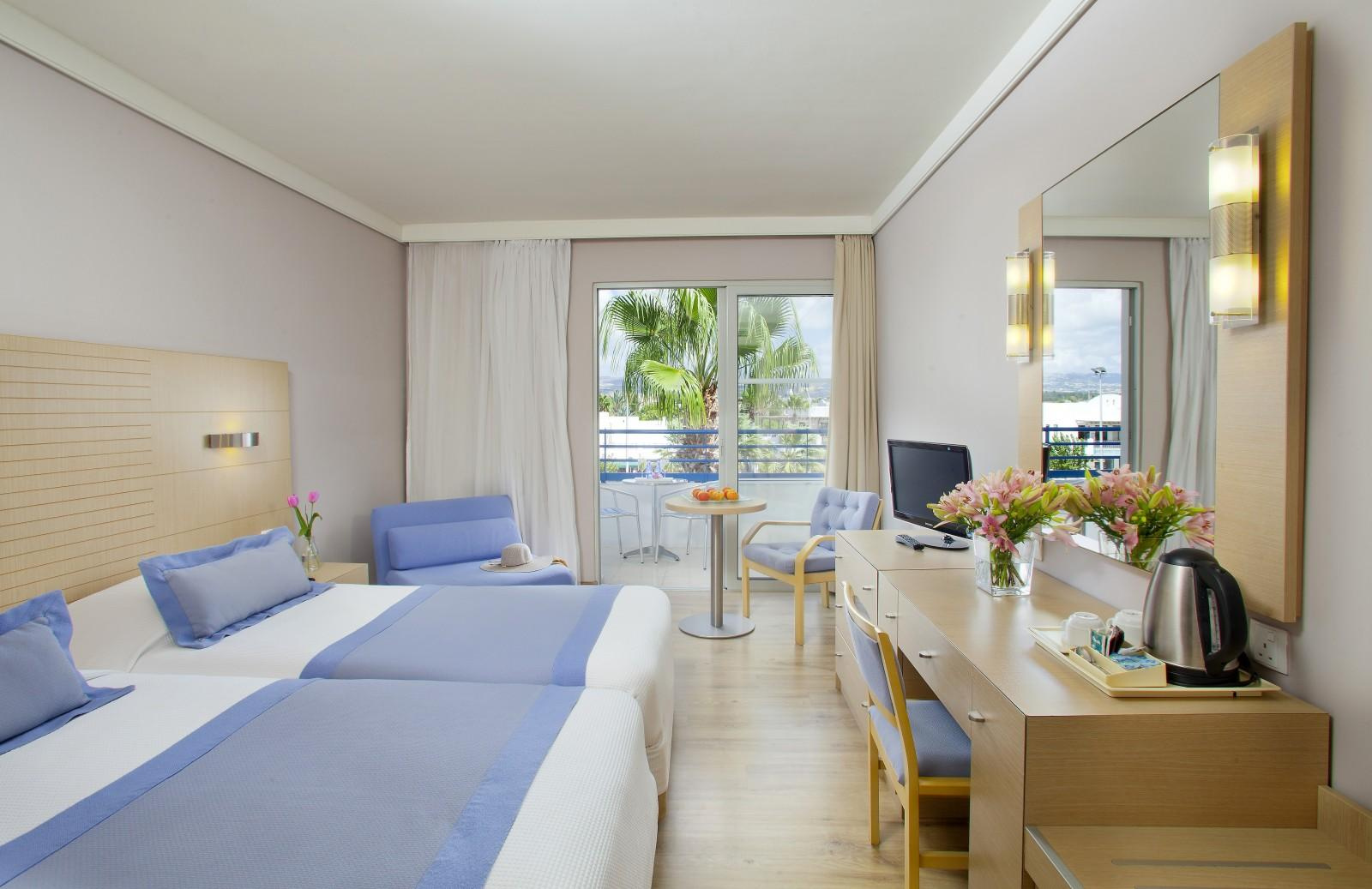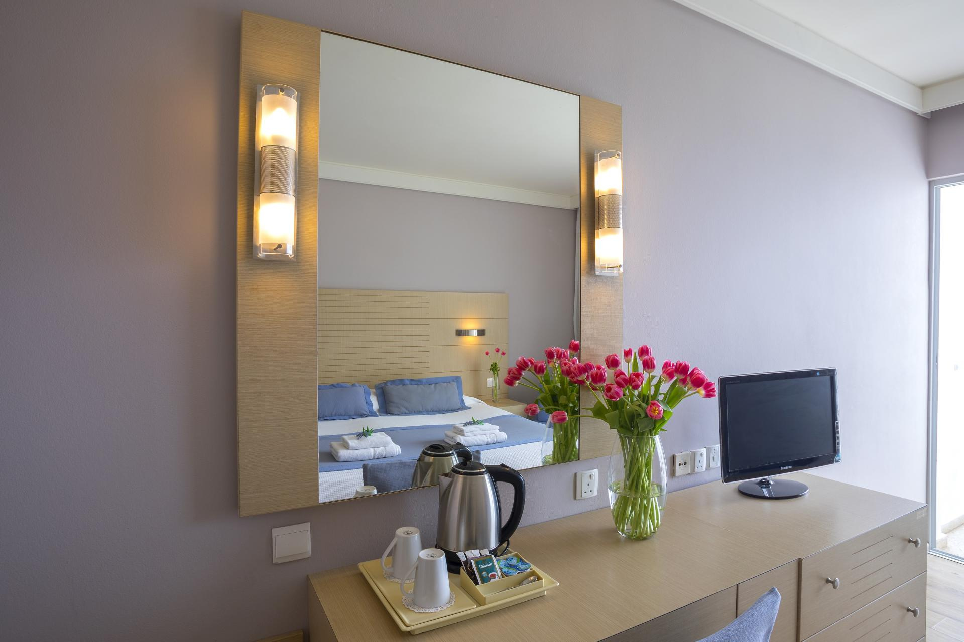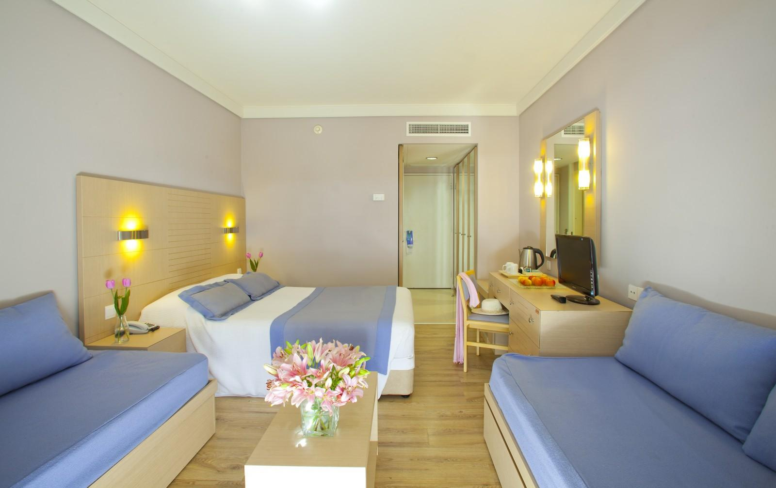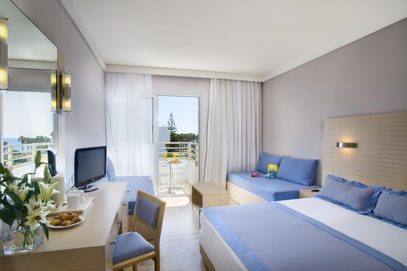 Szobák: minden standard szoba kellemes színvilágú, modern bútorokkal berendezett, egy hálószobás (kb. 24 m2), légkondicionált, fürdőszobás, síkképernyős tv-vel, telefonnal és vízforralóval (kávé-, teakészítése lehetőség), telefonnal és minihűtővel felszerelt. A családi szoba hasonlóan felszerelt, egy hálószobás (kb. 25 m2), bennük franciaágy és két kanapéágy található. Széf, térítés ellenben a helyszínen bérelhető. A szobákhoz erkély tartozik szárazföldre, oldal tengerre néző vagy tengerre néző kilátással.
