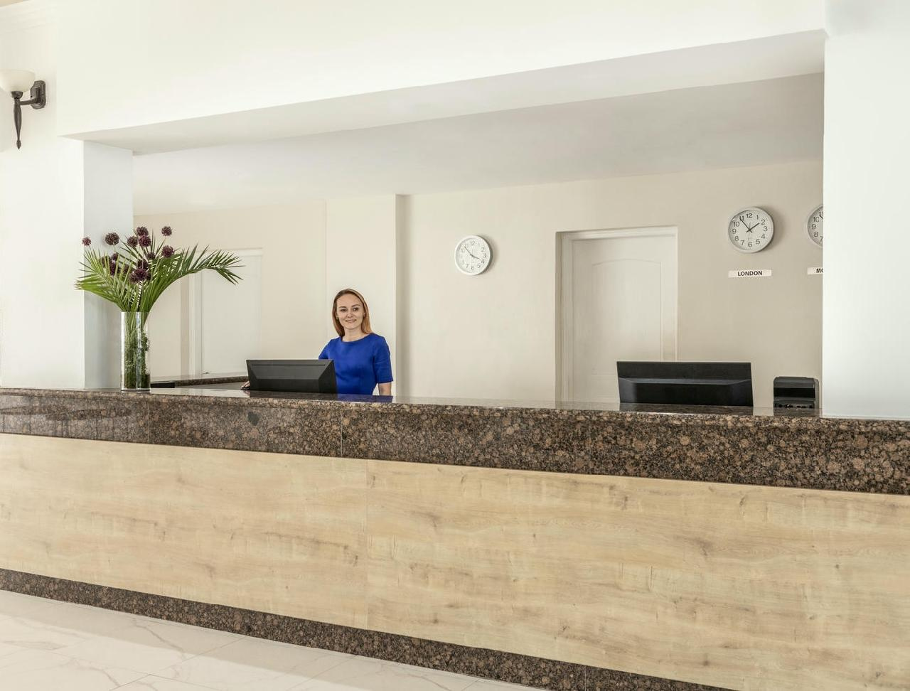 Szolgáltatások: recepció, több étterem (központi és görög), több bár, szobaszervíz, internetezési lehetőség (ingyenes WiFi), parkoló, rendezvényszervezés (pl. esküvő), ajándéküzlet, strandtörülköző szerviz. A városközpontban vásárlási és szórakozási lehetőségek közül választhatunk.