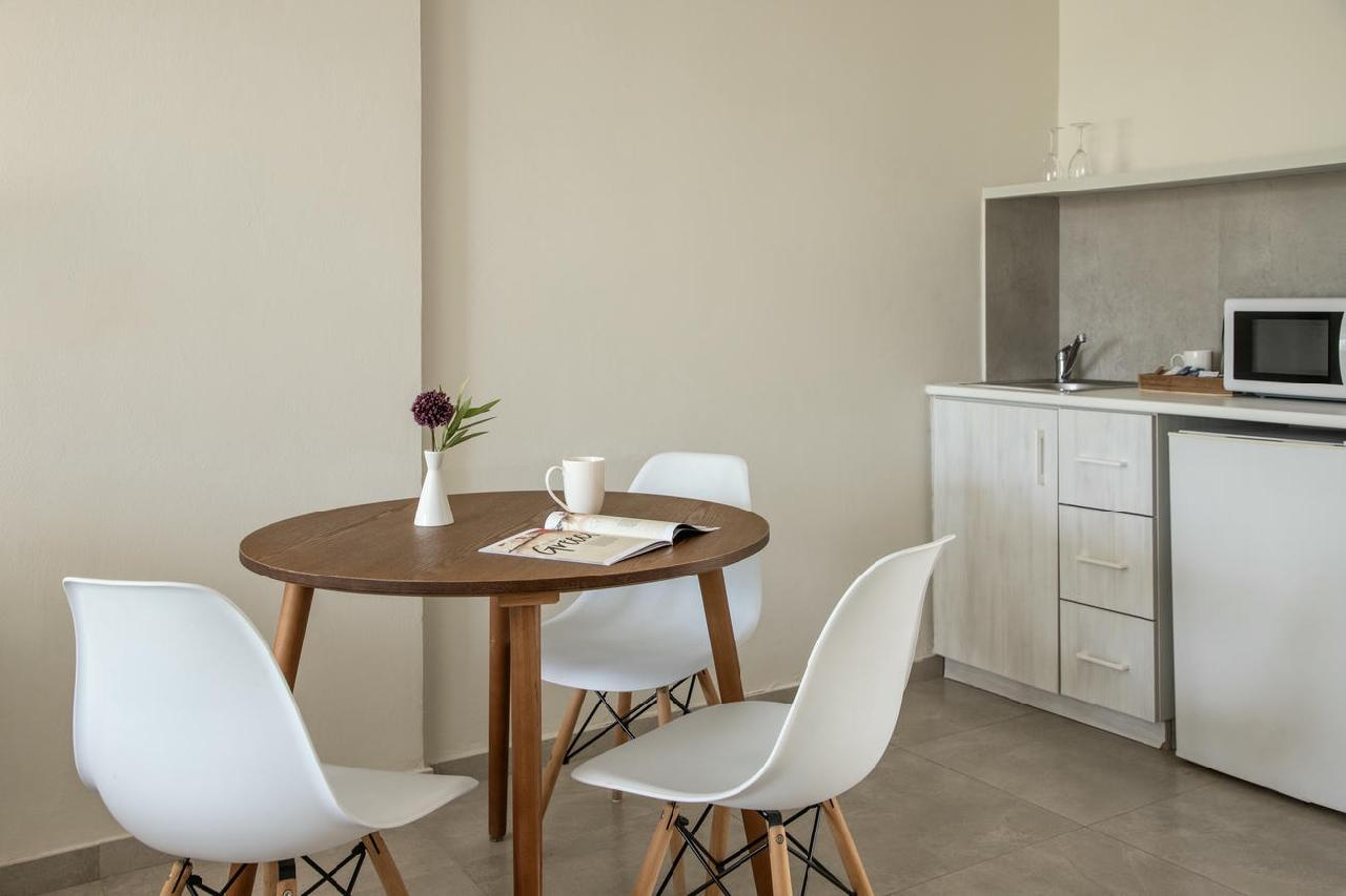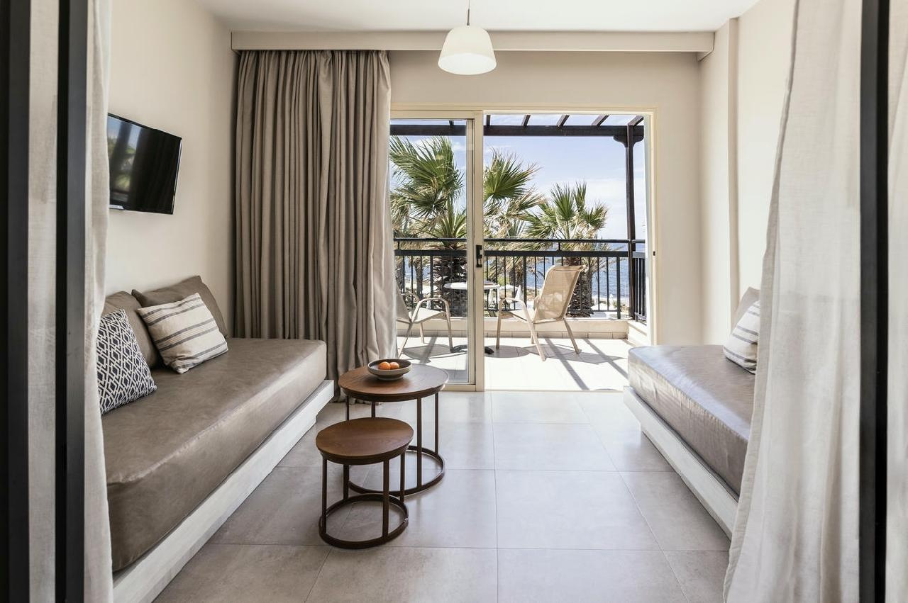 Szobák: minden szuperior stúdió (kb.28 m2) elegánsan kialakított, modern, természetes színvilággal, puha textíliákkal és kényelmes bútorokkal várja a vendégeket, légkondicionált, fürdőszobás, hajszárítóval, minihűtővel, vízforralóval (kávé-, teakészítése lehetőség), mikrohullámú sütővel, síkképernyős tv-vel, szobaszéffel és telefonnal felszerelt. A családi lakosztályok nagyobb alapterületűek (kb. 35m2), külön hálószobával és nappali résszel rendelkezik, ideális családok vagy több teret igénylő vendégek számára. Ugyanazokat a kényelmi felszereléseket kínálja, mint a stúdiók, de nagyobb alapterület és külön pihenőtér jellemzi. A szuperior stúdiókhoz és lakosztályokhoz erkély vagy terasz tartozik, szárazföldre, medencére és oldal tengerre néző kilátással.