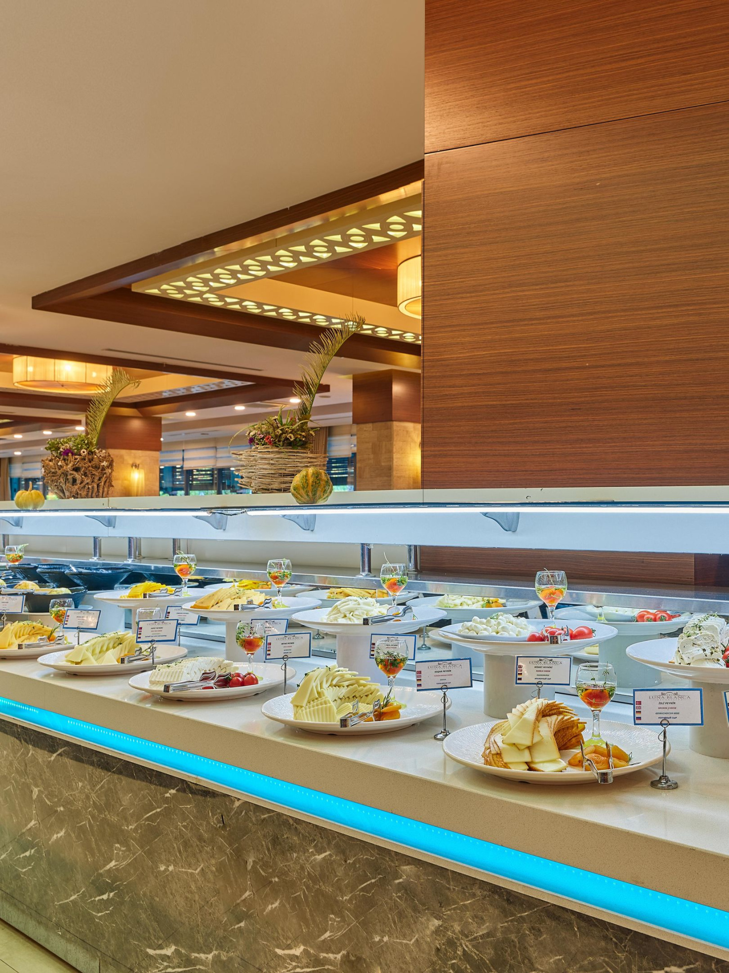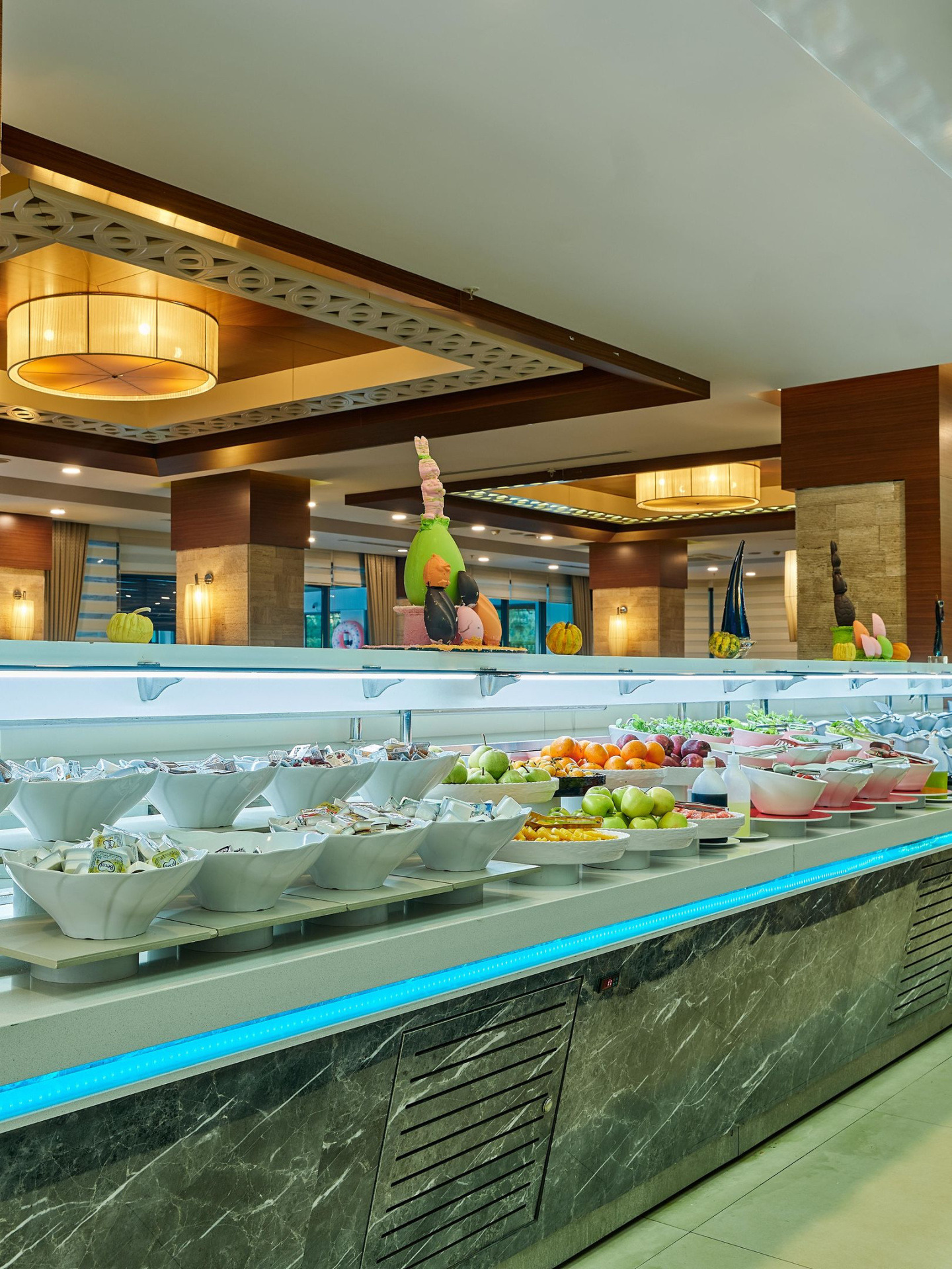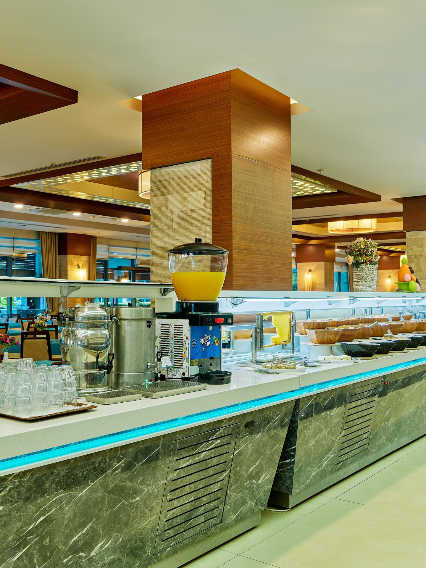 All inclusive ellátás. Ezen kívül reggeli, ebéd és vacsora külön is foglalható. Külön kérésre szívesen készítenek diétás ételeket, vegetáriánus ételeket és gyermekeknek szánt ételeket. Ezen kívül kapható speciális ételek és snackek. A kínálatban találhatók alkoholmentes italok és alkoholos italok.