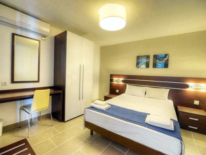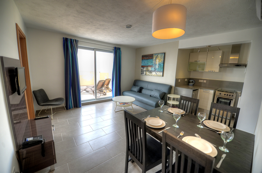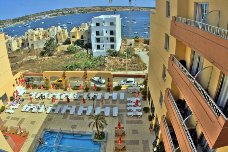 Fekvése: utasaink körében évek óta nagy népszerűségnek örvendő, több épületből álló 160 szobás modern, jól felszerelt apartmanhotel, egyedülálló fekvéssel, ideális helyen, a Mellieha Bay (Málta legnépszerűbb lassan mélyülő homokos strandja) közelében, a legközelebbi beach klubtól (fizetős) háromszáz, a homokos szabad strandtól ötszáz méterre található. Mellieha városa 1 km-re, egy kiugró sziklaszirten található. Közelében a kisvendéglők, bárok és buszmegálló található. A szállás közelében található buszmegállóból egyénileg is könnyen megközelíthetjük a sziget bármely pontját.