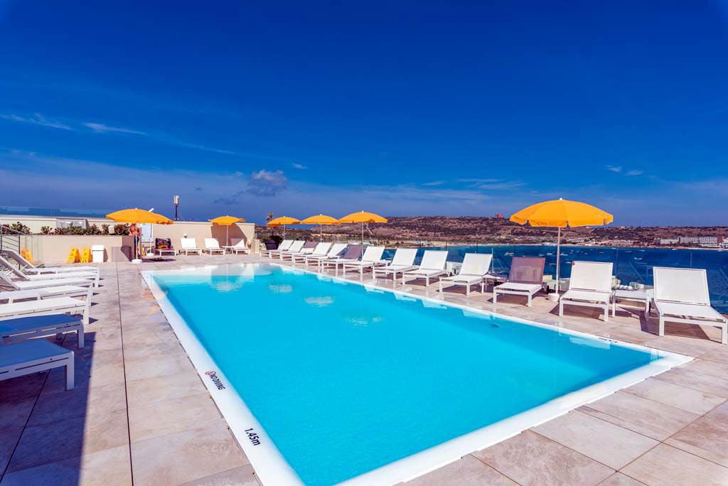 népszerű, több épületből álló, modern, jól felszerelt apartmanhotel, ideális helyen, a Mellieha Bay közelében, a legközelebbi beach klubtól háromszáz, a homokos szabad strandtól ötszáz méterre található.
