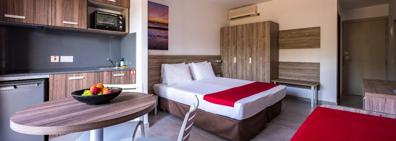 Szobák: minden szuperior apartman szépen berendezett, légkondicionált (központilag szabályozott), egy vagy kéthálószobával és nappalival (~40-50m2), a nappaliban kialakított konyharésszel (főzőlap, mosogató, hűtő, vízforraló), fürdőszobával, laposképernyős tv-vel, ventilátorral és telefonnal felszerelt. Felár ellenében szobaszéf a helyszínen igényelhető. A szobákhoz erkély vagy terasz tartozik, medencére vagy a szárazföldre (városra) néző kilátással.
