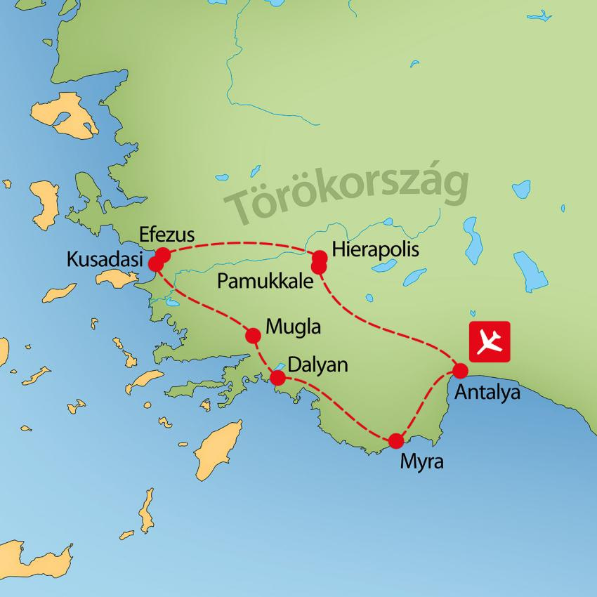 A programunk során úgy fog tűnni Önnek, mintha a megkapó látnivalók sosem érnének véget: fehéren nyújtózó mészkőteraszok, letűnt időkről mesélő romok, archeológiai kincsek, a tenger szemkápráztató kékeszöldje, hósipkás hegyvonulatok, csodaszép városok, titokzatos mecsetek, egzotikus nyüzsgés, karcsú pálma- és gyümölcsfákkal övezett utcák.