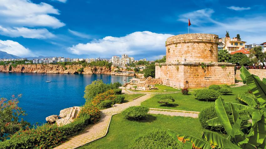 Antalyába látogatunk, amely a Török Riviéra egyik legszebb városa. A Taurus-hegység csúcsai és a régióra jellemző növényzet csodálatos látványt nyújtanak. Megnézzük a város szimbólumait, többek között a Yivli Minaretet, az óratornyot, a kikötőt és a régi városfalat. A séta folyamán lehetőségük lesz vásárolni. Ezen kívül alkalmuk nyílik meglátogatni egy ékszer- és egy bőrmanufaktúrát, ahol kedvező áron juthatnak a török kézművesipar remekeihez. A kirándulás fénypontja a Karpuzkaldiran-vízesés megtekintése. Szállás Antalya környékén.