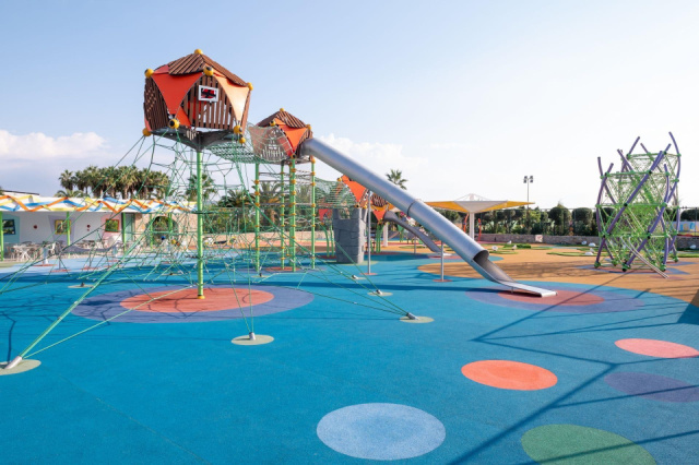 Az 5 csillagos szálloda közvetlenül a homokos tengerpaton fekszik, hatalmas területen. Több medencével és aquaparkkal rendelkezik, valamint számos sportolási lehetőség áll a vendégek rendelkezésére. Elsősorban gyermekes családok számára ajánljuk.