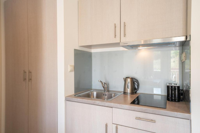 2-3 fős szobákban és 3-4 fős családi luxus apartmanokban. A főhálószobában franciaágy, a nappaliban ággyá alakítható sarokgarnitúra áll rendelkezésre. Apartmanokban felszerelt sarokkonyhához, minihűtő, kenyérpiritó, kávégép,evőeszközők,vízforraló is tartozik. Minden egységhez vasaló, vasalódeszka, telefon, TV, WIFI, széf, pipere felszerelés, erkély vagy terasz tartozik.
