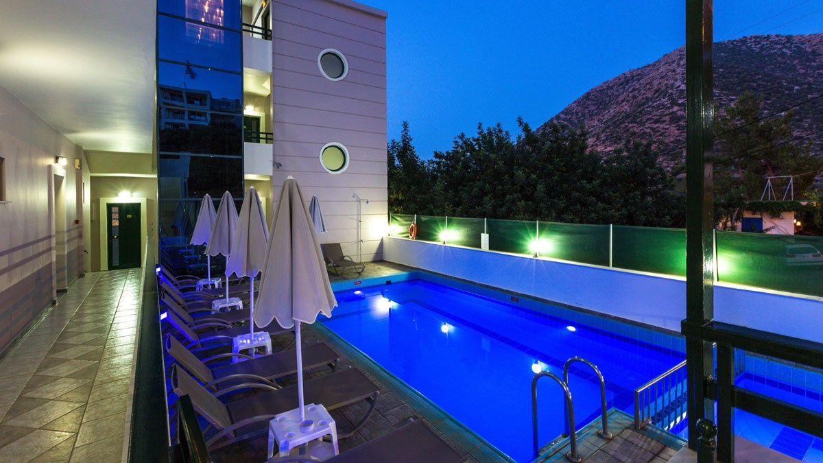 A szálláshely reggelis ellátással és félpanziós (reggeli és vacsora italok nélkül) ellátással foglalható. A vendégek a felső emeleten és a tetőkertben élvezhetik a reggelit és a kávét, frissítőket és fagylaltokat, miközben a krétai tengerre nyíló figyelemre méltó kilátásban gyönyörködhetnek.