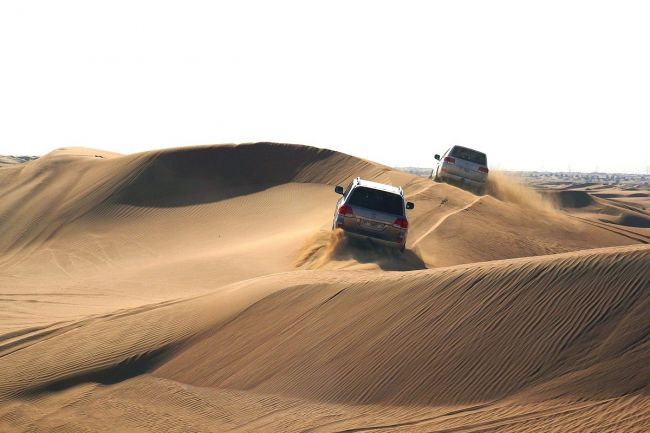 A délután kezdődő program során lehetőségünk nyílik a sivatag dűnéin tevegelni és terepjáróval "terepjárni", tradicionális arab öltözékben fotókat készíteni és megismerkedni a hennafestéssel. A program során autentikus arab vacsoránkat egy exkluzív táborban fogyasztjuk el a sivatagban.