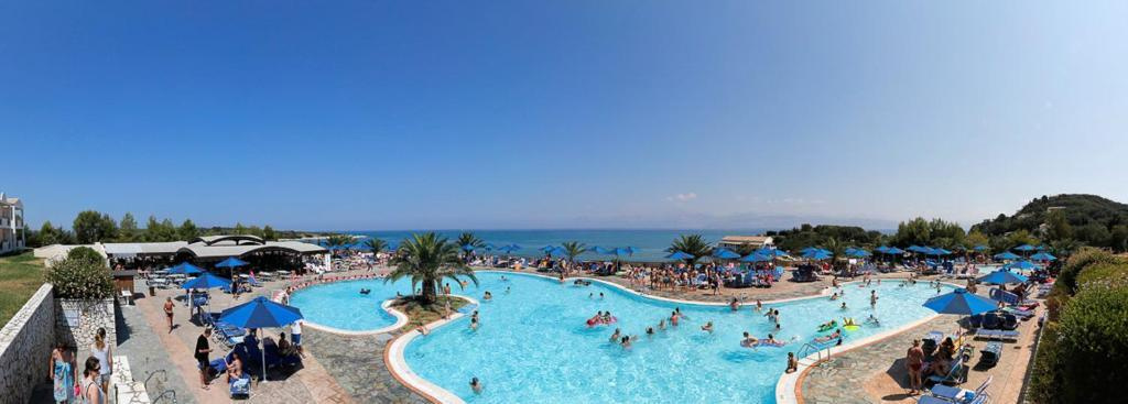 A korfui repülőtértől kb. 43 km-re, közvetlenül a homokos, Agios Spyridon strandon található.