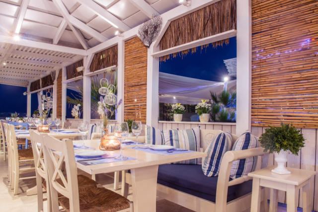 Félpanziós ellátással (reggeli és vacsora italok nélkül) foglalható. A szálloda étterme görög és mediterrán konyhával várja vendégeit. A szálloda egy bárral is rendelkezik a medence mellett.