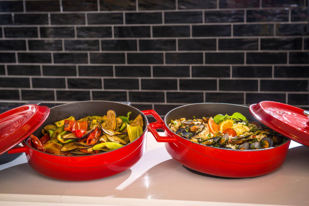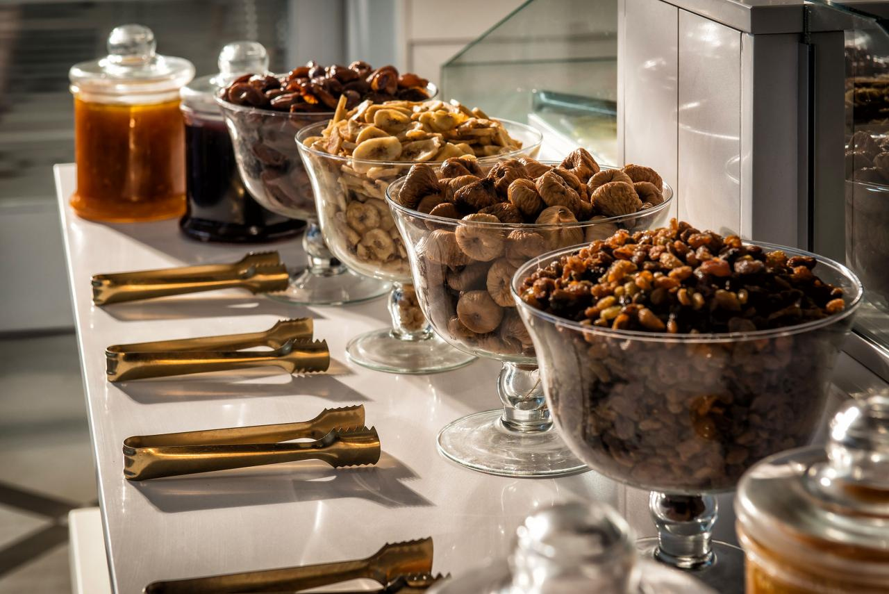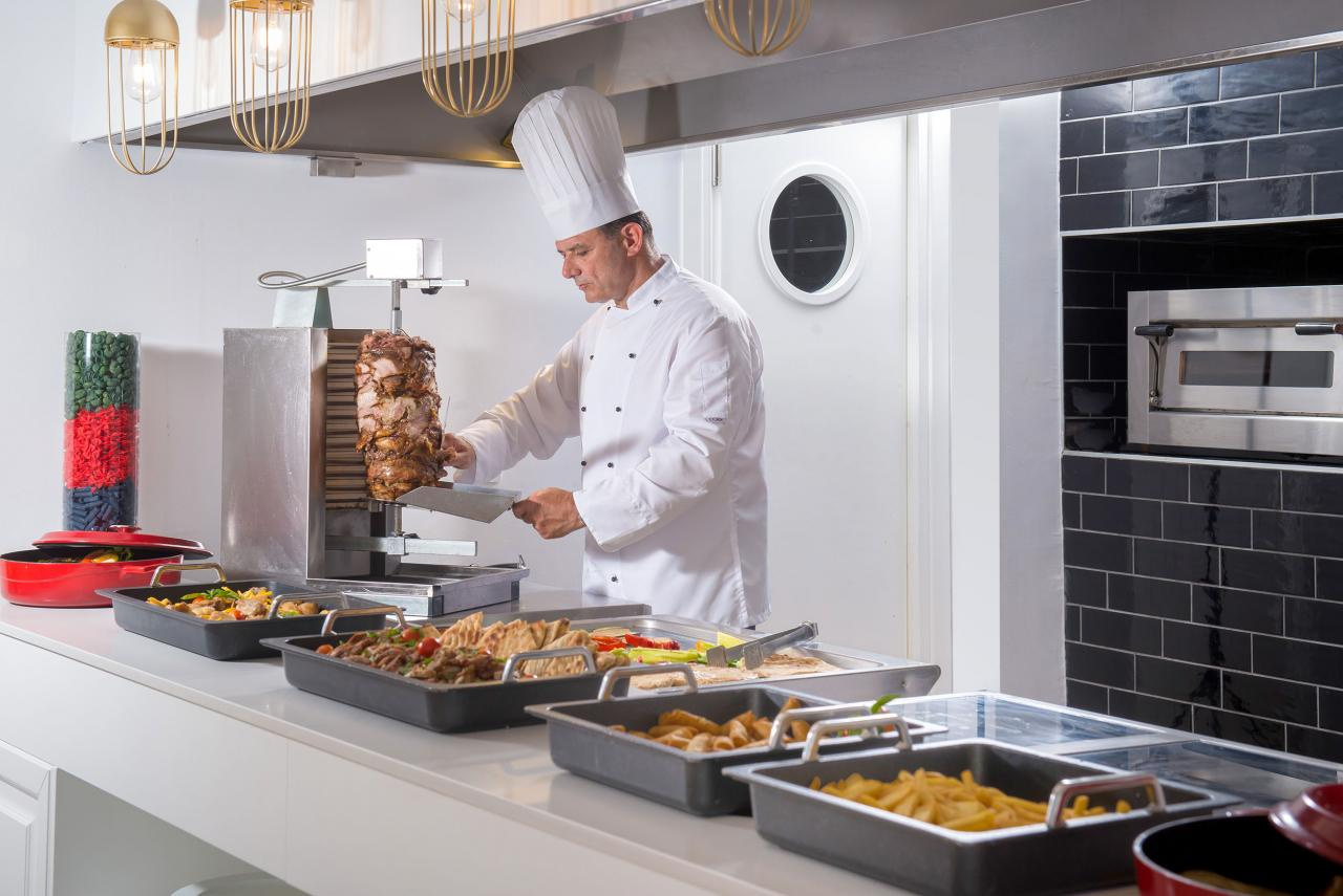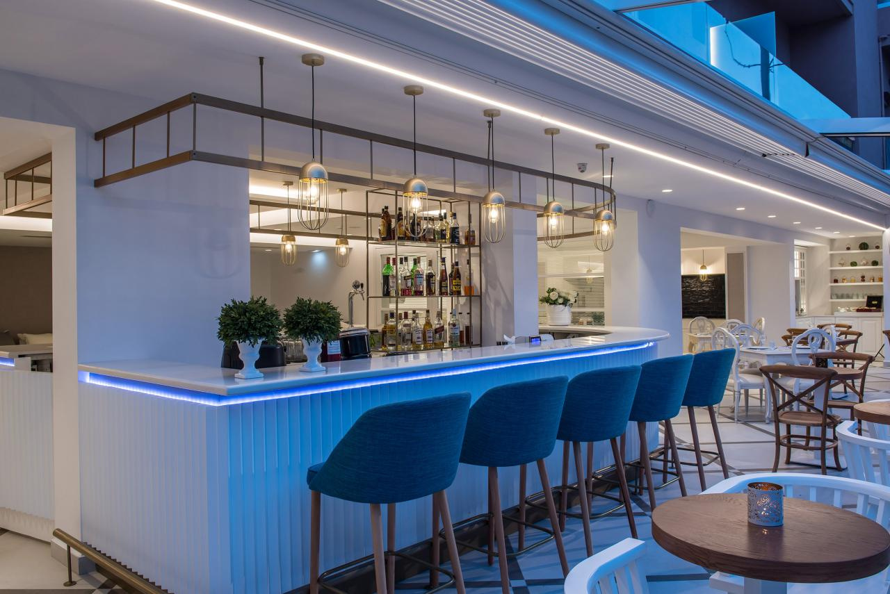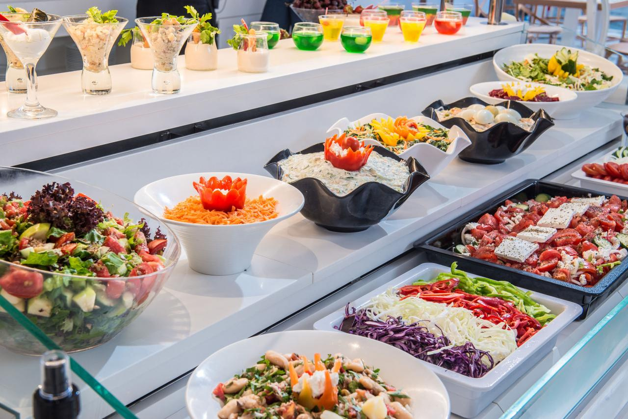 Félpanziós ellátással (reggeli és vacsora italok nélkül) foglalható. A szálloda étterme görög és mediterrán konyhával várja vendégeit. A szálloda egy bárral is rendelkezik a medence mellett.