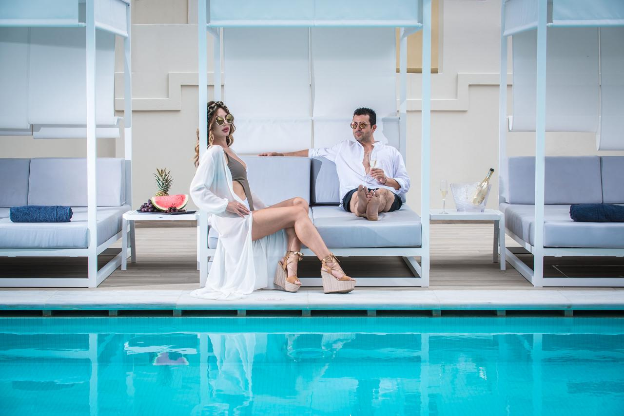 A medence mellett a napernyők és napágyak ingyenesen, míg a tengerparton térítés ellenében vehetők igénybe.