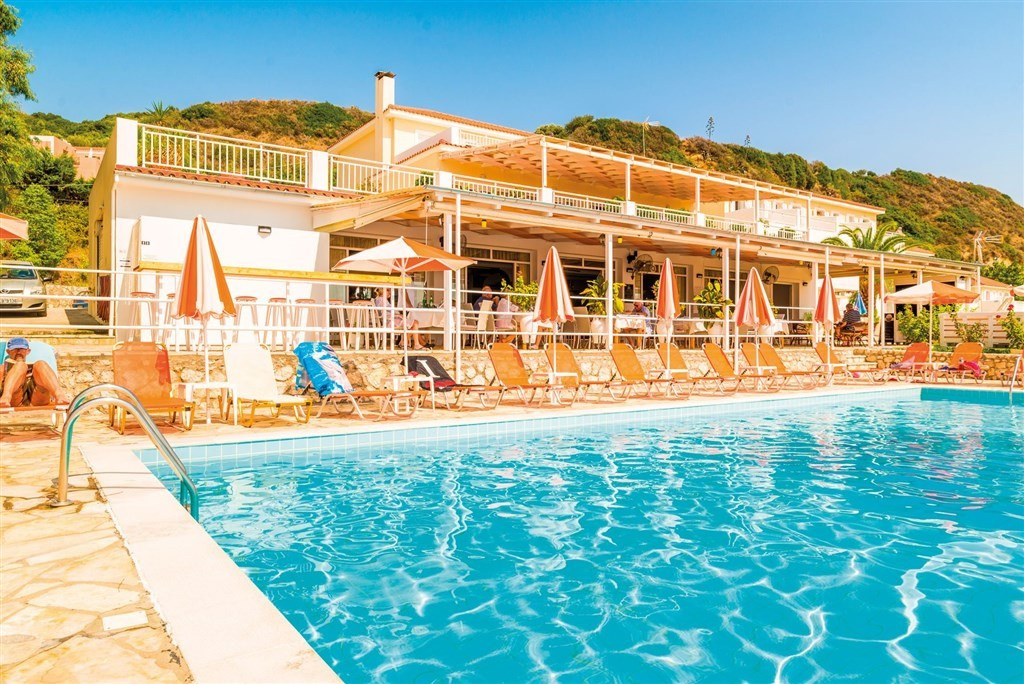 A szálloda a híres és nyüzsgő Skalától kb. 3 km-re található, a festői Mounda öbölben. A családi vezetés alatt álló létesítmény egy gondozott kertben helyezkedik el, amely a sziget egyik legszebb, a turistaforgalomtól érintetlen strandjában végződik. A szobákból, valamint a szálloda egyes részeiből egyedülálló kilátás nyílik a Jón-tenger türkizkék vizére. A buszmegálló kb. 2 km-re található. Minden korosztály számára ajánljuk.