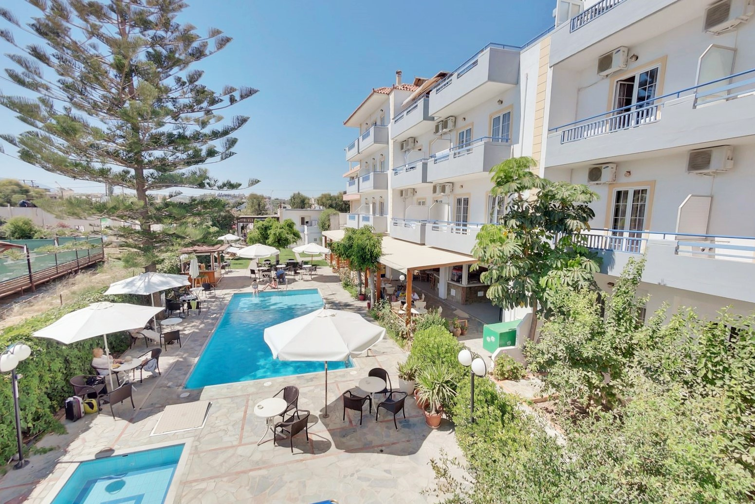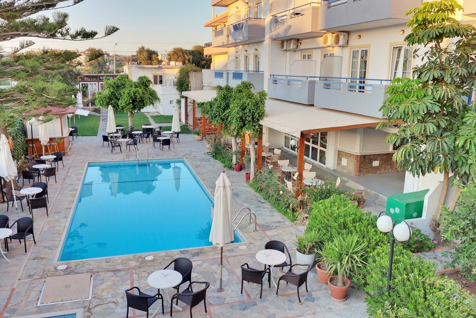 Kültéri medence, gyermekmedence állnak rendelkezésre. Térítés ellenében vízi sportok, kirándulások, lovaglás érhetők el. A Krétai Akvárium kb. 30 km-re, míg a Water City vízi park kb. 25 km-re található.