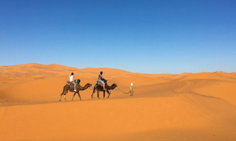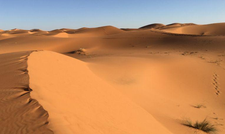 Reggelit követően a Szahara, azon belül is Merzouga felé vesszük az útirányt. Utunk során érintjük a "marokkói Svájc" néven is ismert Ifrane települést (a több mint 1600 méteres magasságban található városka a Középső-Atlasz területén helyezkedik el, ahol a téli időszak során sípályák is üzemelnek). Útközben megállunk Azrou erdejénél, ahol megfigyelhetjük a berber makákókat. Majd Erfoud felé vesszük az irányt, ahol terepjárókra váltunk és úgy érjük el úti célunkat, Merzougát. Vacsora és szállás egy sivatagi táborban (1 éj).