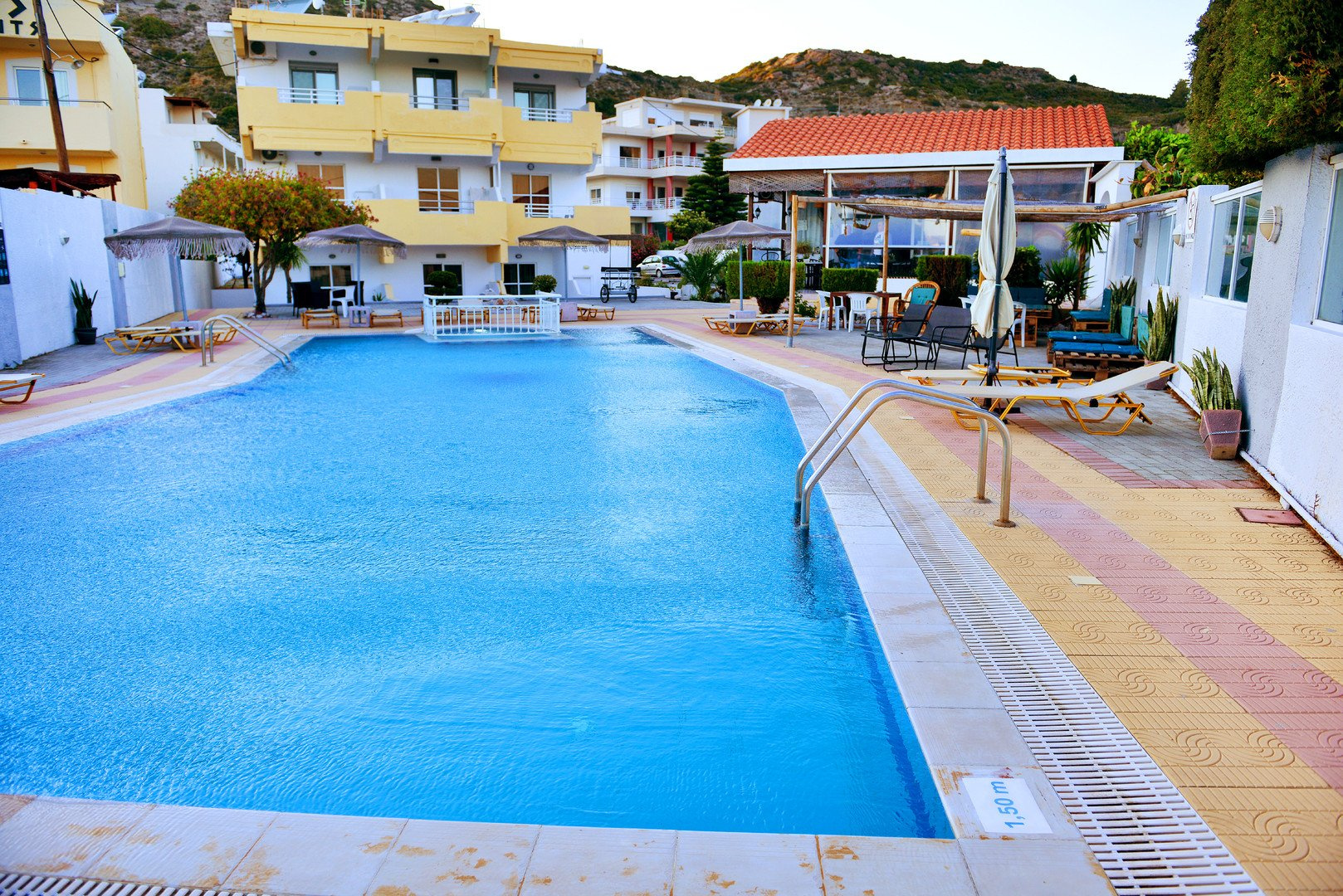 Pihentető nyaralás ;Közel a Faliraki strandhoz;Egyszerűen berendezett, kényelmes studiók konyhasarokkal