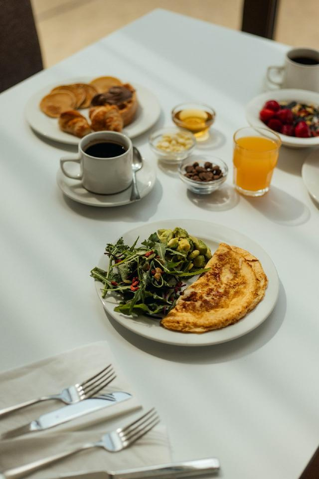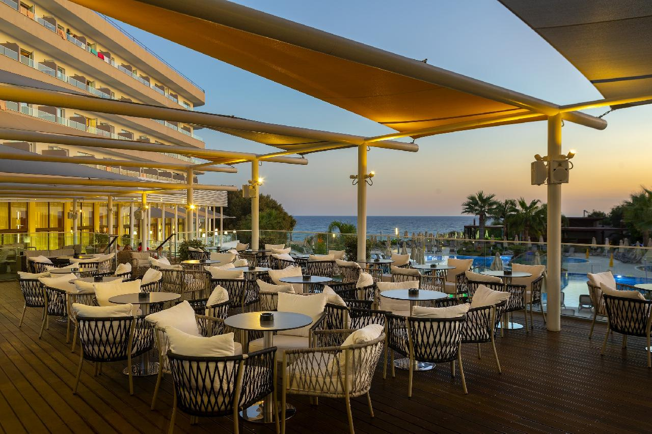 Étkezés: Félpanzió, svédasztalos reggelivel és vacsorával. Friss gyümölcsök, pékáruk, hideg és meleg fogások, tojásételek, zöldségek, joghurtok és különféle italok – kávé, tea, friss gyümölcslevek – teszik teljessé a kínálatot. A vacsora is svédasztalos formában zajlik, amely a nemzetközi és mediterrán ízek változatos kombinációját nyújtja. A vendégek helyi ciprusi specialitásokat is kóstolhatnak, valamint élvezhetik a tematikus estek változatos fogásait. Az all inclusive ellátás magában foglalja a napi három főétkezést – reggelit, ebédet és vacsorát –, amelyek büfé formában érhetők el, nemzetközi és helyi ízek változatos kombinációját kínálja. Az étkezések mellé különféle italokat kínálnak, beleértve a helyi alkoholos italokat, borokat, valamint az alkoholmentes frissítőket is, amelyeket a korlátlanul fogyaszthatnak a vendégek 10-23 óra között. A vendégek emellett több bár közül választhatnak, ahol széles italválasztékot kínálnak. Az italválaszték a szálloda által meghatározott az itallapokon ALL jelöléssel található. Mind a reggeli, ebéd és vacsorák során kiemelt figyelmet fordítanak az ételek minőségére, frissességére, és igyekeznek minden ételallergiát vagy diétás igényt is kielégíteni. Napközben snackek és könnyű hideg és meleg ételek is elérhetők, valamint jégkrémek, kávé és sütemények a délutáni órákban.