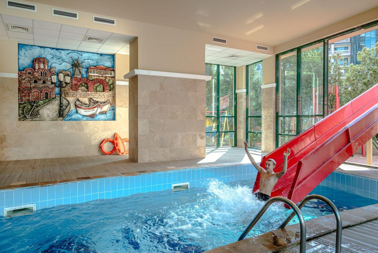 Gyerekek: Vízicsúszda a fedett medencében (10:30-12:00 és 14-16:30), integrált kültéri gyermekmedence, etetőszékek az éttermekben, bébiétel melegítés/előkészítés az étteremben – kérésre; játszótér.