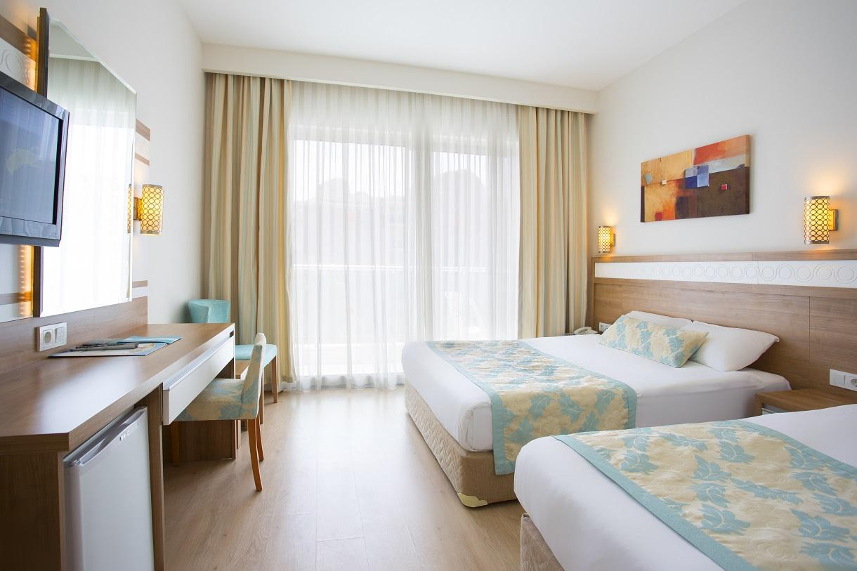 Szobák: A Merve Sun Hotel & Spa hotel összesen 176 tágas szobával rendelkezik, melyek mindegyike légkondicionált, televízióval, telefonnal, minibárral, széffel (térítés ellenében), tea- és kávékészítéshez szükséges eszközökkel, a fürdőszoba hajszárítóval felszerelt. Mozgáskorlátozottak számára kialakított szoba igényelhető. A szobák többségéhez erkély vagy terasz tartozik.