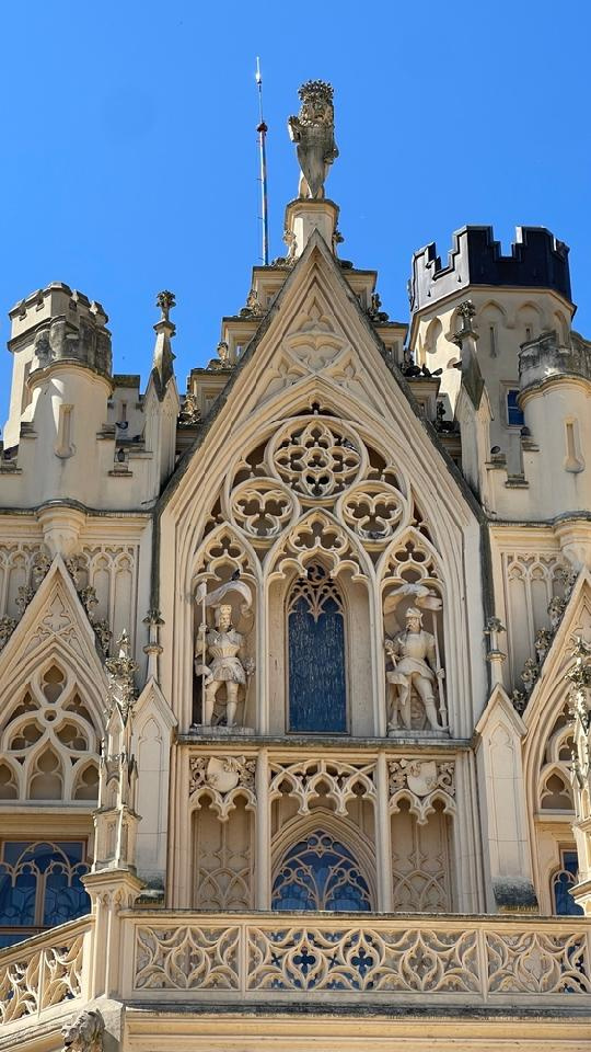 A LEDNICE-ben látható Lichtenstein-kastély romantikus épületegyüttese eredetileg XIII. századi gótikus vár volt, amelyet a XVI. században reneszánsz kastéllyá építettek át. A későbbiekben a barokk szellemében, majd a neoromantika és az angol gótika stílusjegyeiben történtek az átalakítások.