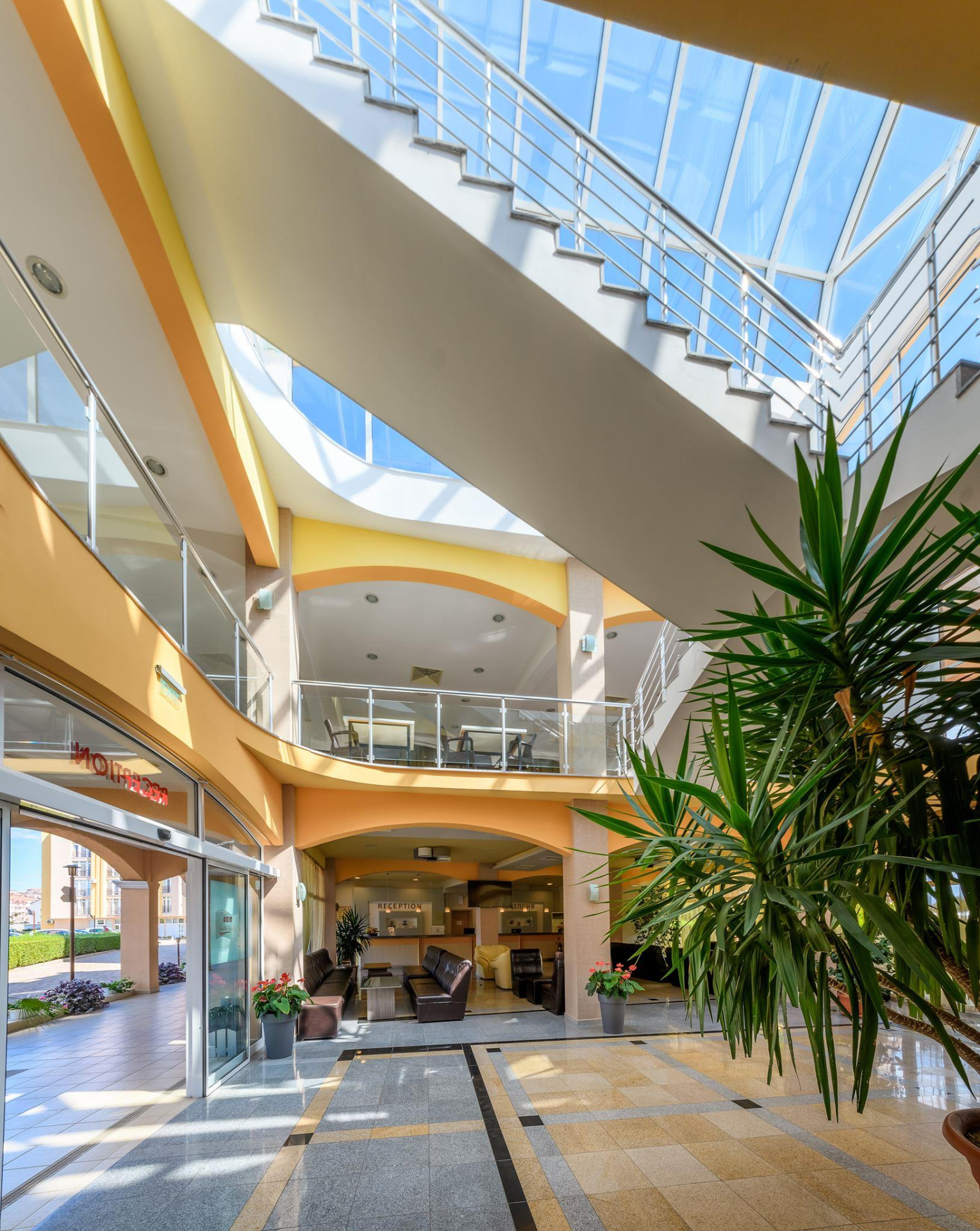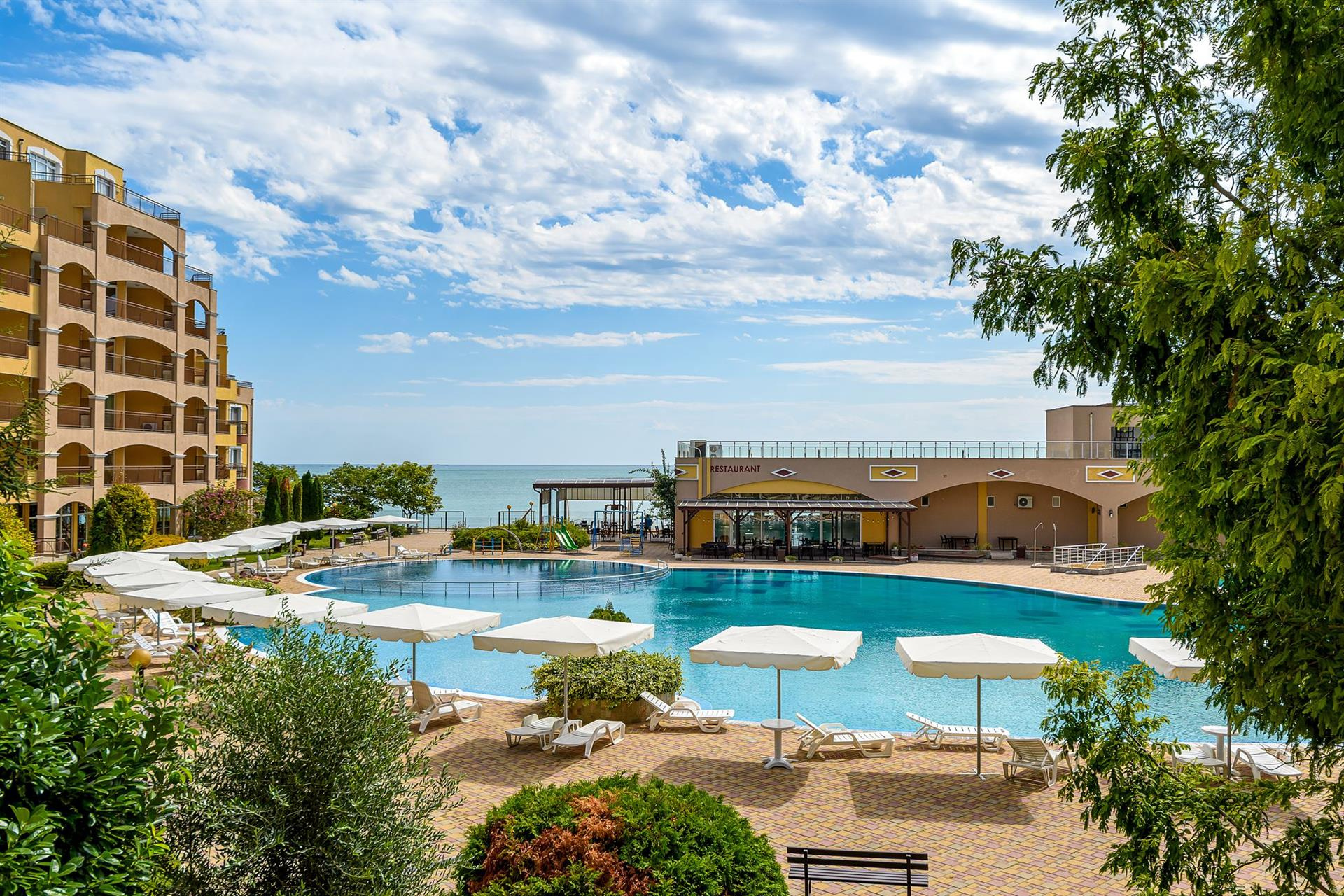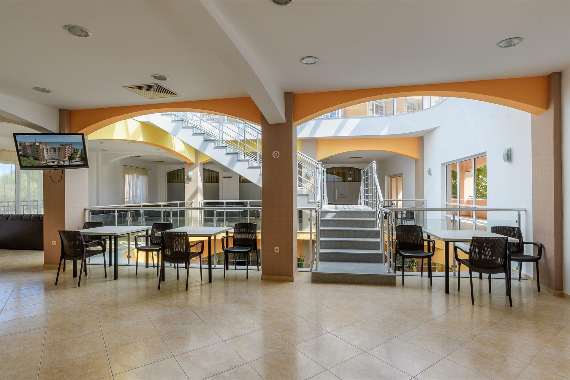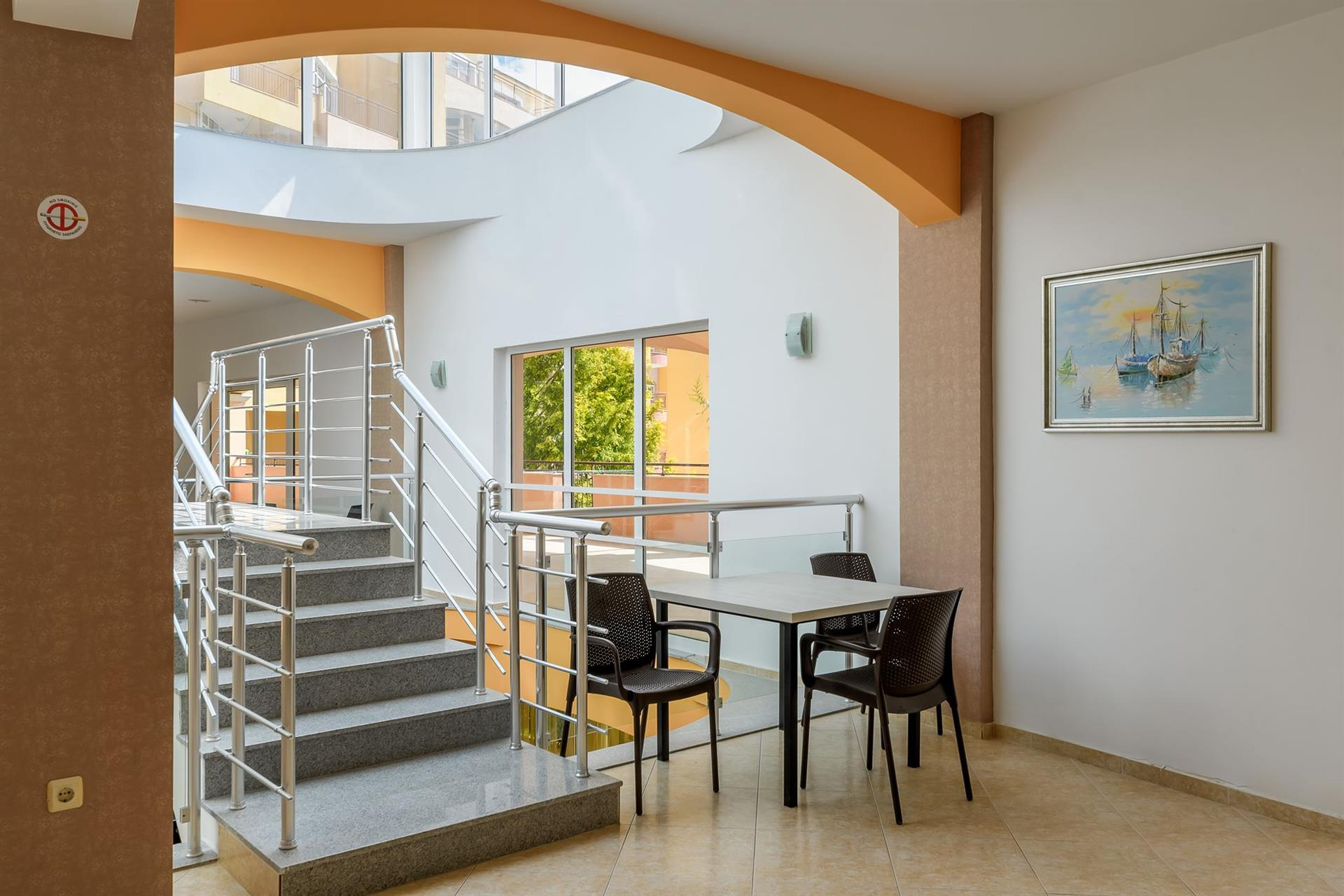 A komplexum egy 7 emeletes liftekkel rendelkező szállodából és apartmanokból áll.