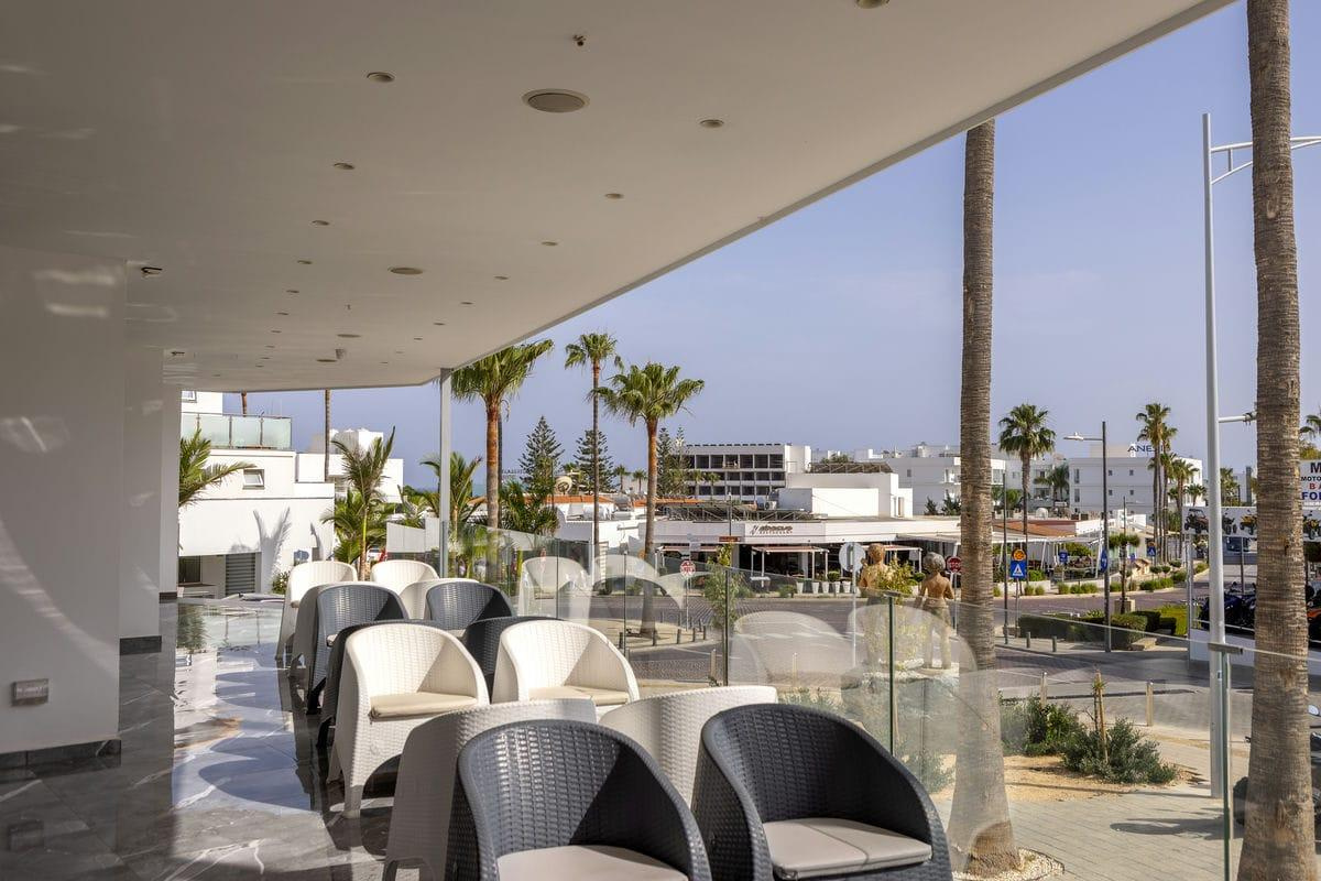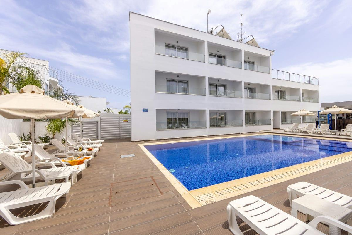 Ayia Napa népszerű tengerparti üdülőhelyén, a városközpont és a bulinegyed közelében található, kategórián felüli minőségű, modern, letisztult dizájnnal rendelkező, 84 szobás szálloda.